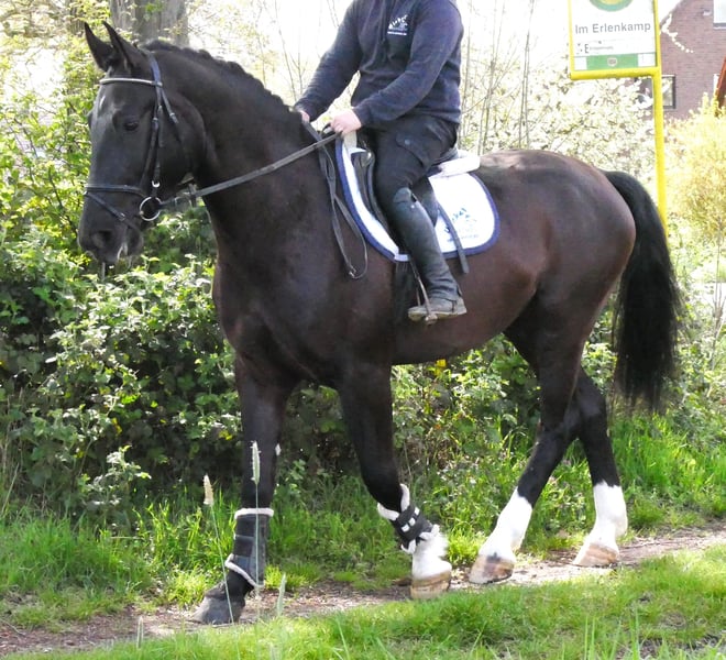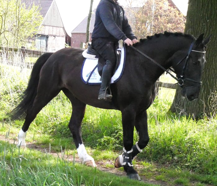 Name: Rosendal Alter: geb. 06.04.2022 Geschlecht: Wallach Stockmaß: 167 cm Rasse: Pol. Warmblut Abstammung: Rik x Lazur Ausbildungsstand: angeritten und ein zwei und vierspännig gefahren Zum Verkauf steht dieser bildschöne und super brave Wallach Rosendal. Er ist sehr brav unter dem Sattel und auch vor der Kutsche zeigt er sich unerschrocken und zugfest ( wurde ein zwei und vierspännig gefahren ) Im Umgang ebenfalls lieb und unkompliziert , zur Zeit barhufer Rosendal ist ein echtes Traumpferd für den Freizeitbereich ! Telefon 0176 62495567