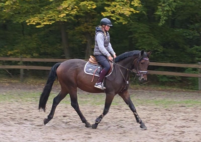 Eddy ist ein liebenswerter Freizeitkumpel der durch seine zugewandte und süße Art schon am Putzplatz zu begeistern weiß. Auch beim Reiten ist er anständig und unglaublich cool. Eddy lässt sich leicht an den Zügel stellen, hat ansprechende Bewegungen und zeigt auch Freude und Talent am Sprung. Er lässt sich nett dressurmäßig reiten, absolviert erste kleine Sprünge unter dem Reiter und geht absolut gern und unerschrocken ins Gelände. Sowohl in der Gruppe als auch allein. Bei weiterer Förderung wäre er auch für den Turniersport geeignet. Er ist übrigens so entspannt, dass er auf sich turnen lässt. Auch an Bodenarbeit und kleinen Kunststückchen hat er sicher Spaß. Er ist recht neugierig und ein wenig verspielt. Eddy steht hier tagsüber mit anderen Wallachen auf dem Paddock und nachts in der Box. Aber auch den reinen Weidegang und Offenstallhaltung kennt er. Im Umgang ist er ein Schatz. Duschen, Hufschmied, Verladen etc alles kein Problem. Tolle Gelegenheit für jemanden der sich sein zukünftiges Traumpferd noch selbst weiter formen möchte. Fast 4j Wb Wallach, 1.64m Klinische Aku vorhanden Video: https://youtu.be/qH6W38tlBkA?si=8w2eZvt6WqLIQqtG „Videos, Trainingsausschnitte und weitere Eindrücke zu unseren Verkaufspferden finden Sie auch auf Instagram: [maresi_lange]. Dort erhalten Sie zusätzliche Informationen und Einblicke in die Entwicklung der Pferde. Videos, training highlights and further impressions of our sales horses can also be found on Instagram: [maresi_lange]. There you will get additional insights and a closer look at the horses’ development.“ Weitere Pferde auf meiner Homepage MaresiLange.de oder auf Anfrage. Die Beschreibung des Pferdes beruht auf subjektiven Eindrücken und Erfahrungen unsererseits und ist keine Beschaffenheitsvereinbarung und Zusicherung von Eigenschaften. Probereiten erfolgt auf eigene Gefahr. Verkauf erfolgt im Auftrag. Für das Vorstellen/ Probereiten des Pferdes erlauben wir uns eine Aufwandsentschädigung in Höhe von 30 Euro zu berechnen. Diese wird natürlich bei Kauf des Pferdes verrechnet.