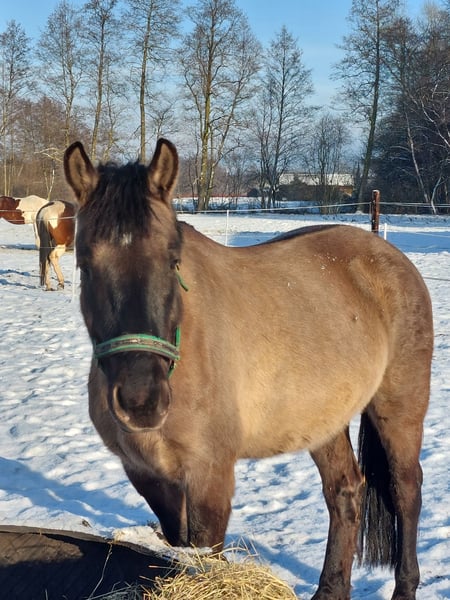 For sale is a handsome buckskin gelding, 5.5 years old, with an approximate height of 157 cm (15.1 hh). A very well-behaved, balanced horse with a pleasant character. He is sensitive to ride and suitable for both an ambitious rider and as a reliable family horse. Ideal for leisure riding, hacks, and daily handling. The gelding is easygoing, personable, and uncomplicated. A great horse for those seeking a dependable partner for leisure and family riding. For more information, please contact us upon request. WhatsApp: +48 784 738 028 Affordable transportation can be arranged.