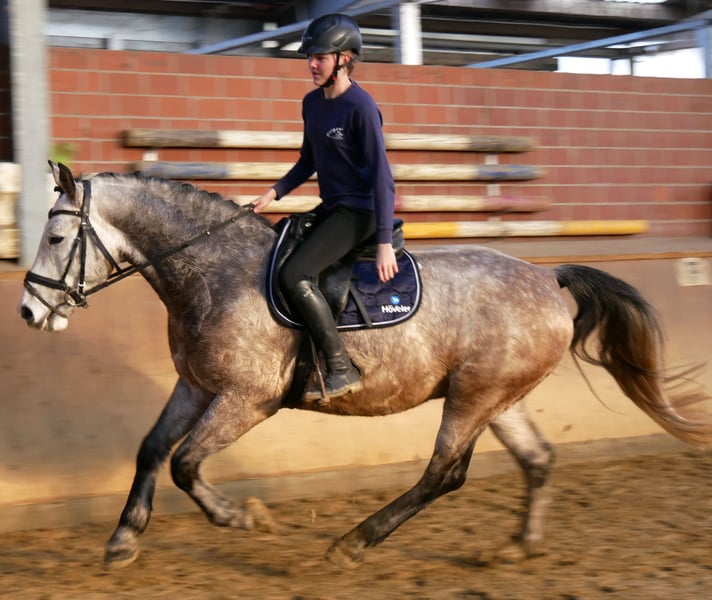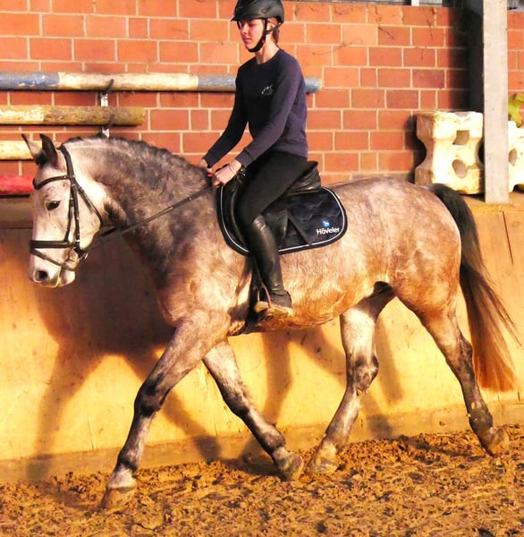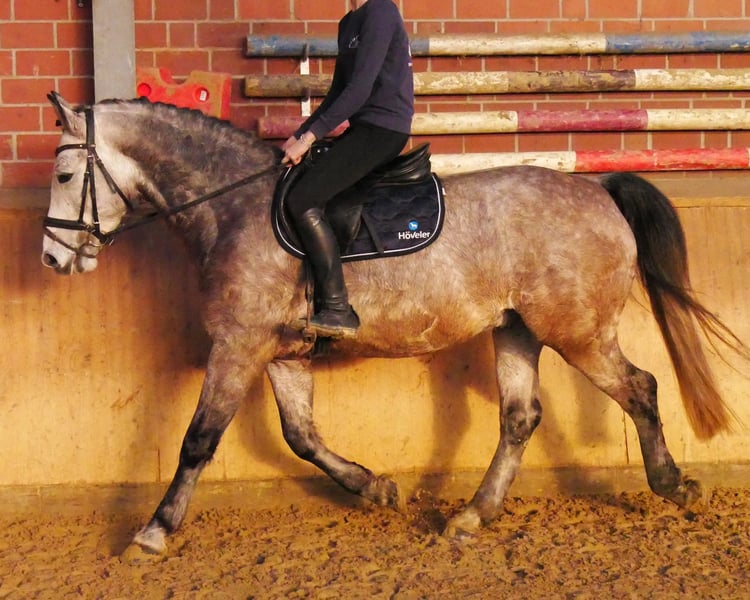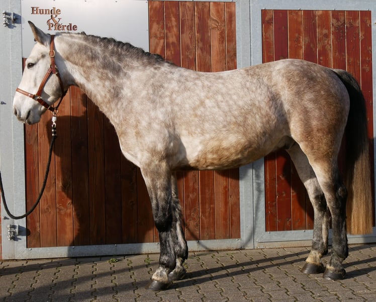 Change is a very well-behaved gelding of medium height. He is a true all-rounder, excelling in the indoor arena, on the outdoor riding surface, and confidently handling the terrain. He also jumps courses and could be used immediately in a riding school. Change is vaccinated, dewormed, and gets along very well with other horses. For more information, please contact us at 0176 62495567.