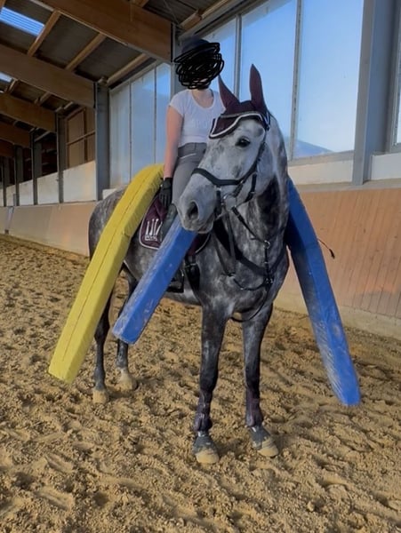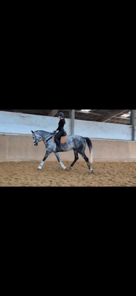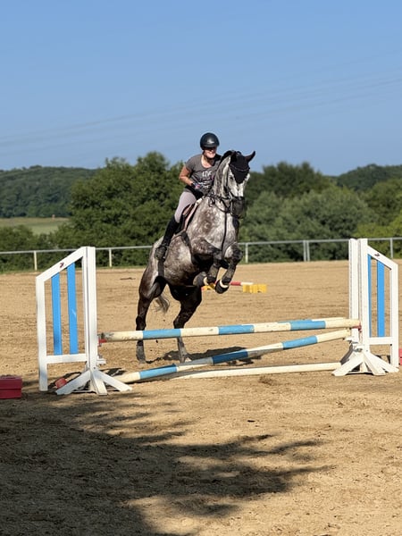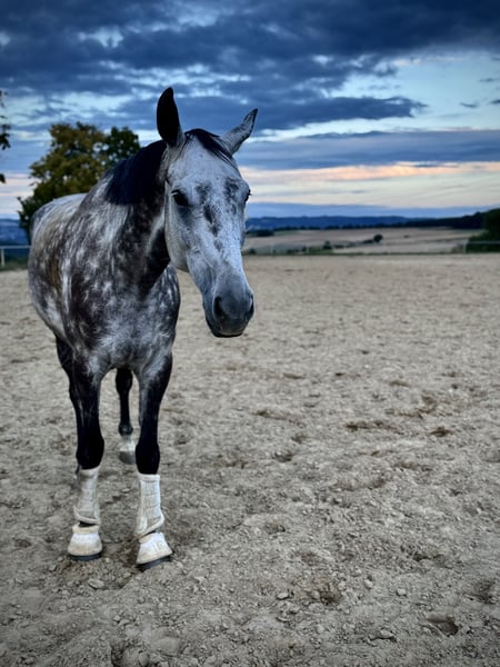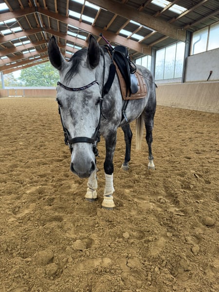 With a heavy heart, I am offering my 8-year-old gelding Giovanni for sale. Giovanni is a very open and balanced horse. He has been trained in dressage but also demonstrates a good jump. He is always confident and fearless in the terrain. In handling, he is simply an absolutely lovable horse who even allows children to play with his nose and shows no bad habits. He has already been ridden in cross-country jumping courses and on unfamiliar farms, where he proved himself to be a little professional. As well-behaved as he is, he is not suitable for beginners or reintegration riders. He demands an experienced rider and wants to be ridden. If a aid is not clear, he shows this quite clearly. Giovanni is only available to the very best hands and this is definitely not a last-minute sale! Please feel free to contact me if you have any further questions.