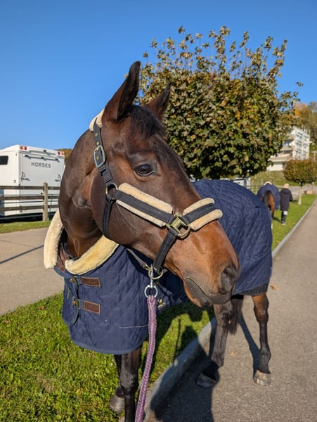 Vegas excels both in daily work and in the field – he is very easy to ride, whether in dressage or hacking. He has no issues with loading or the farrier. Owned by me since birth and always well cared for. An ideal partner for an amateur looking to develop and progress. Great horse for jumping beautiful courses! (130-140 cm) Quiet and reliable in work, on rides, and in all types of transport. He will be the perfect partner for an amateur aiming to compete in higher-level events. Up-to-date vaccinations, osteopath, farrier, and dentist. Bought at birth and has never changed owners.