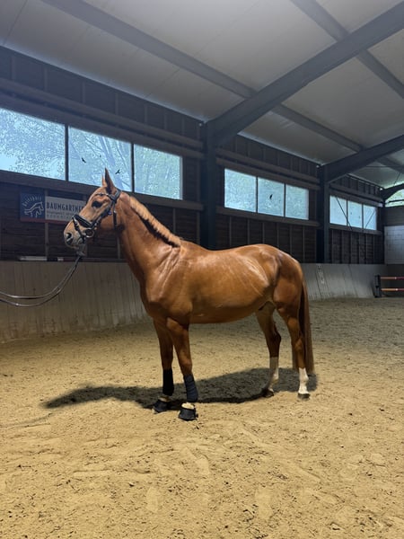 Sales advertisement: Beautiful Warmblood gelding for sale We are offering our talented Warmblood gelding for sale. Features: - Breed: Warmblood - Gender: Gelding - Year of Birth: 2017 - Color: Chestnut - Height: approx. 170 cm - Discipline: Dressage This charming gelding impresses not only with his appealing color but also with his excellent temperament and willingness to learn. He is well-mannered and shows great potential in dressage. He is suitable for both experienced riders and ambitious beginners who wish to enter the world of dressage and can already ride with a lot of sensitivity. Fipsi is sired by DON FURST*CANTO and has a very sensitive nature. He was gently backed a year ago and is always motivated. However, he requires a somewhat experienced rider when being ridden. Fipsi goes great on trails and is farrier/load friendly. If interested, please feel free to contact us. Location: 8283 Bad Blumau We look forward to your inquiry!