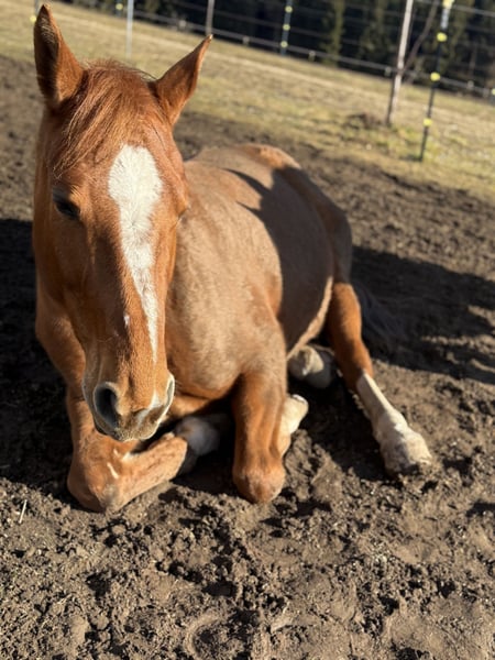 It’s difficult for me to write this, but I would like to rehome my 11-year-old Pinto mare, Barbaletta, whom I affectionately call Barbie, as I’ve realized I cannot provide her with what she needs. Barbie is very eager to learn and loves to do tricks. She is a very sensitive yet somewhat dominant horse (a typical chestnut mare 😂). She also tends to rear if handled too roughly. I would wish for Barbie to find a home where she is accepted as she is. Unfortunately, she is not very good at loading into a trailer. Barbie is currently kept in an open stable but is also used to box stall housing. For your information, Barbie has mild arthritis in her knee, so outdoor pasture turnout would be better for her. She will be sold with all her equipment: - Sattel von Katzengruber - One bridle with a snaffle bit - One Hillbury halter - A few blankets