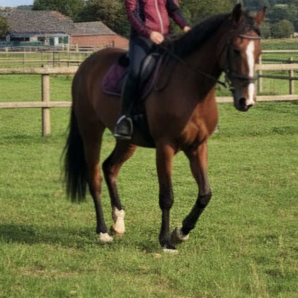 For sale: Beautiful Warmblood-type mare, standing at approximately 16.1 hands. This is a 2009-born half-blood mare, ridden in all three gaits. She is chestnut and has a height of about 165 cm. The mare is ideal for leisure riding; she is very well-behaved in handling and poses no issues for her handler. Although listed as a trotter in her passport, she can be ridden in all gaits on the bit and is very comfortable, with a sofa-like ride quality. She is trained for leisure riding and is very sensitive in the mouth. Generally, she is a typical mare but is absolutely fearless and not spooky. However, she is better suited for experienced leisure riders, as she may lift her hindquarters if subjected to too much pressure. She goes well in the terrain with a lead horse and is reliable riding alone, although she sometimes prefers to turn around. She also jumps small obstacles. This mare is perfect for experienced riders seeking an affordable leisure horse. Currently, she may need some muscle development, but she has never been ill. If you are interested or have further questions, please feel free to contact me. Viewing appointments can be arranged, and a trial ride is possible for a fee of €20 in advance.