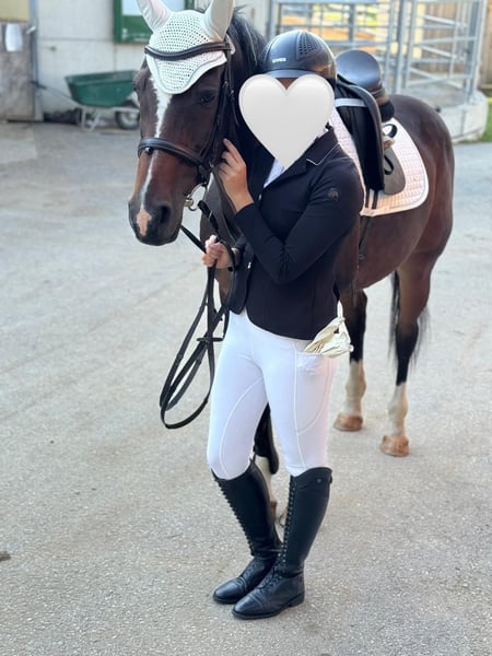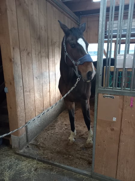 We are selling our mare, 21 years old, still fit and with a young, lively character. Despite her age, she appears very young, motivated, and eager to move. She is in good physical condition and is especially a great horse for trail riding. She is quite spirited, confident on her feet, and has a lot of fun in the terrain. Therefore, she is not suitable for beginners but ideal for experienced riders looking for an honest, forward-going horse. She is accustomed to riding alone as well as in a group, and she remains attentive and brave in both situations. Character-wise, she is alert, friendly, and very sensitive. She absolutely needs a consistent handler or owner she can bond with.