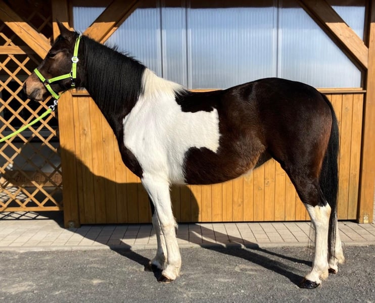 Zum Verkauf steht eine 4-jährige Stute mit einer außergewöhnlich schönen, dreifarbigen Scheckung, die sofort ins Auge fällt und sich deutlich von der Masse abhebt. Neben ihrer beeindruckenden Optik überzeugt sie vor allem durch ihren hervorragenden Charakter – sie ist äußerst lieb, ruhig und absolut unkompliziert. Die Stute ist angeritten und geht sicher in allen drei Grundgangarten. Sie zeigt sich stets kooperativ, aufmerksam und brav unter dem Sattel. Dank ihres ausgeglichenen Wesens eignet sie sich auch für weniger erfahrene Reiter unter Anleitung sowie ideal als Freizeitpferd. Im Umgang sowie in der Herde ist sie unkompliziert und nicht dominant. Sie ist an ein abwechslungsreiches Umfeld gewöhnt und kennt sowohl landwirtschaftliche Maschinen als auch Straßenverkehr, wodurch sie gelassen und nervenstark ist. Auch im Gelände überzeugt sie auf ganzer Linie – sie geht sowohl alleine als auch in der Gruppe ruhig und sicher. Eine wirklich besondere Stute, die Schönheit, Charakter und eine solide Grundausbildung vereint. Für sie wünschen wir uns ein liebevolles und verantwortungsbewusstes Zuhause, in dem sie die Wertschätzung erhält, die sie verdient. Standort: Polen, ca. 70 km von Görlitz entfernt (ca. 40 Minuten). Transport: möglich.