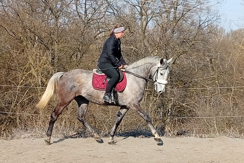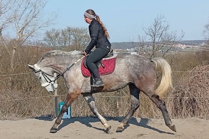 dobrý charakter, bezproblémová na ošetřování, na jízdárně i pro slabší jezdce, dobrý pohyb, učenlivá, bez zdravotních omezení a zlozvyků. Výška hůlkou cca 160cm. V základním výcviku, perspektivní do sportu.
