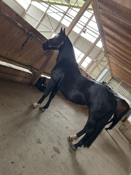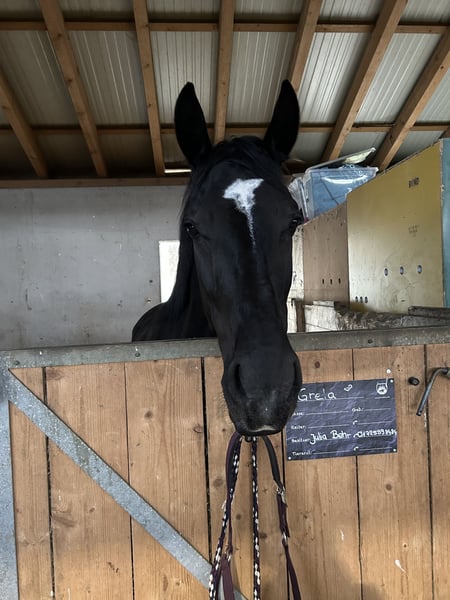 Zum Verkauf steht eine 5 jährige polnische Warmblutstute. Sie ist ca. 1.60 cm. Barhufer. Sie ist solide ausgebildet, läuft brav Schritt, Trab und Galopp in der Halle. Auch kleine Sprünge meistert sie mit Geschick. Longieren und Stangenarbeit macht sie auch gerne. Beim führen, putzen und versorgen ist sie sehr brav und zeigt sich immer von ihrer besten Seite. In der Gruppe, so wie allein, läuft sie brav und auch im Gelände kann man sich auf sie verlassen. Sie ist unerschrocken und macht alles mit. Krankheiten sind keine bekannt. Bei Fragen gerne melden. Ein Probereiten bei ernsthaften Interesse ist nach Terminvereinbarung gerne möglich. Da mir eine Hand OP bevorsteht muss sie bis zum 1. November ausziehen.