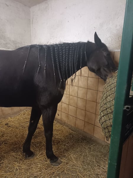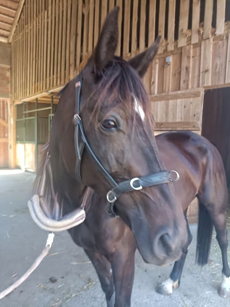Name: Romy Alter: 5 Jahre Stockmaß: ca. 155-160cm Geschlecht: Stute Romy ist eine wunderschöne, sensible Traber-Stute mit viel Herz und Ausstrahlung. Sie braucht etwas Zeit, um sich auf neue Situationen und Menschen einzulassen, doch wenn man ihr Sicherheit gibt, zeigt sie sich sehr fein, aufmerksam und kooperativ. Im Umgang ist sie brav, lässt sich putzen, führen und verladen. Unter dem Sattel bringt sie Temperament und Lernfreude mit, benötigt jedoch eine erfahrene, konsequente Hand, die ihr Sicherheit vermittelt. Romy ist kein Anfängerpferd, aber für jemanden, der Freude an der Ausbildung junger Pferde hat, wird sie ein toller Partner. Aktueller Trainingsstand Durch meine Verletzung musste ich leider eine längere Zwangspause einlegen, wodurch Romy etwas Muskulatur verloren hat. Sie befindet sich daher aktuell nicht auf ihrem vollen Potential. Unter dem Sattel kennt sie Schritt, Trab und Galopp. Für einen Traber beherrscht sie bereits einen relativ ordentlichen Galopp (siehe Video, da ist meine jüngere Schwester sie übrigens zum allerersten Mal geritten🙈), auch wenn es ihr aufgrund der fehlenden Muskulatur und Balance noch passieren kann, in den „Tralopp“ zurückzufallen. Mit regelmäßigem Training verbessert sie sich jedoch stetig und gewinnt mehr Kraft und Ausdauer. Das bringt Romy mit : Jung, gesund und lernwillig Sensibel und menschenbezogen – baut bei Vertrauen eine enge Bindung auf Verladefromm Beherrscht die Grundgangarten, Galopp entwickelt sich kontinuierlich Barhuf, schmiedefromm, regelmäßig geimpft & entwurmt, Zähne regelmäßig gemacht Das suchen ich für Romy: Einen erfahrenen, liebevollen Freitzeit Platz mit viel Geduld und Freude an der Förderung junger Pferde. Ideal wäre ein Reiter, der Spaß an Bodenarbeit, Dressur-Basisarbeit und gemeinsamen Ausritten hat und Romy die nötige Zeit gibt, ihr volles Potential zu entfalten. Probereiten kann gerne vereinbart werden, dafür nehme ich eine Gebühr von 30 € die beim Kauf rückerstattet wird um Reittourismus fernzuhalten 📍 Standort: Bezirk Perg 💶 Preisvorstellung: VB 6.500 € 📞 Kontakt: +43 660 8254954
