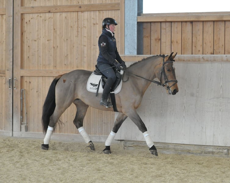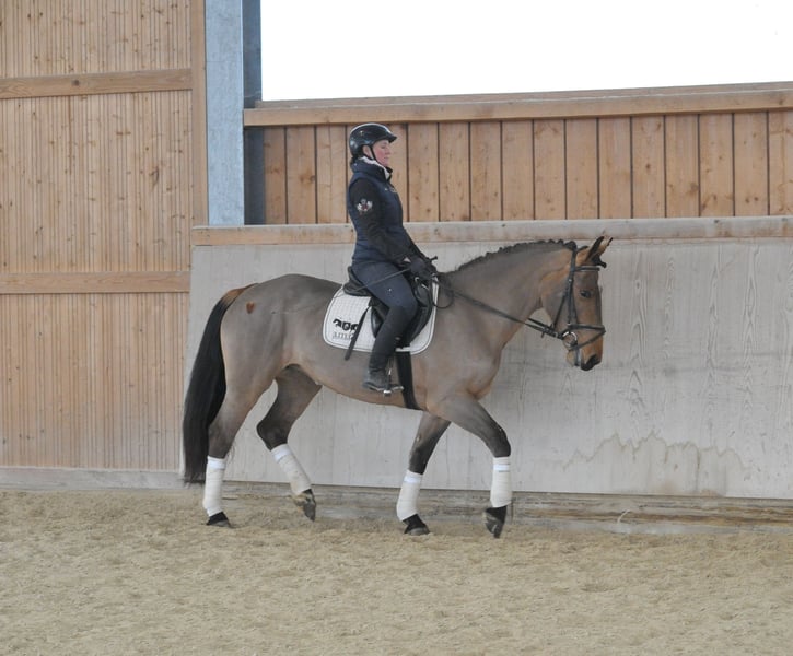 Compact, very charming brown mare with excellent all-rounder qualities. Her lovable and straightforward nature alone makes her stand out. Although she has only recently been under saddle, she already demonstrates a calm and resilient temperament. Her versatility and riding abilities leave nothing to be desired.