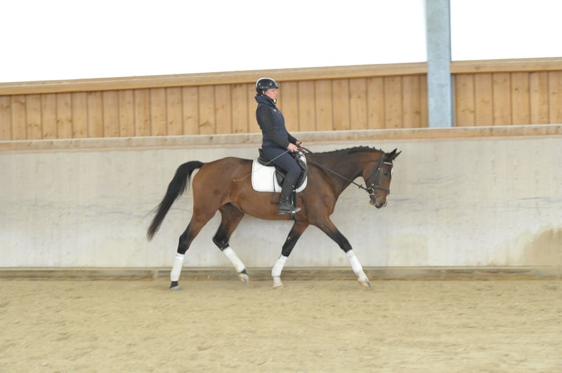 Gundi ist eine elegante, sehr rittige Caraoki Nachkommenstute mit Doppeltalent ausgestattet. Sehr angenehm zum Sitzen, einfach durchs Genick, mit super Einstellung. Tolle Ausbildungsstute für alle Sparten, für Dressur, Halle und Gelände. Eine Empfehlung für nicht ganz so große Reiter.