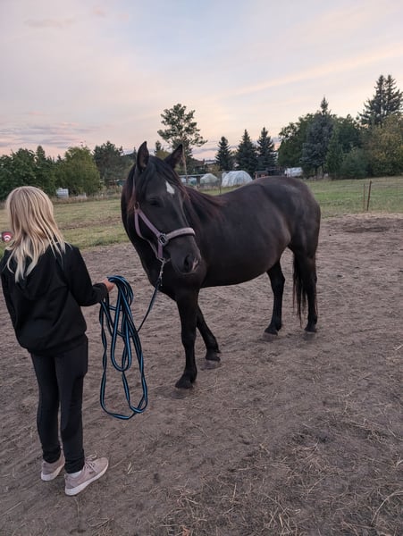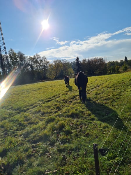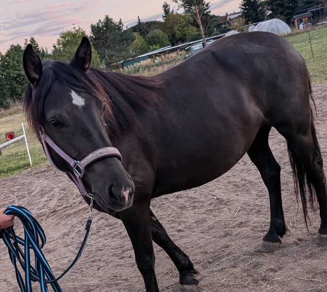 Schweren Herzens muss ich leider meine 2 Stuten abgeben .. Tinker/Haflinger Mix Stute. Geboren 2020. Rappe. Ca. 1,45m. Kennt Reitergewicht und Equipment. Leider nicht weiter ausgebildet. Daher als Roh abzugeben. Absoluter Schatz im Umgang. Kennt alles was es ringsherum gibt. Hunde mag sie allerdings gar nicht. Sie hatte im Sommer leider einen Reheschub. Wer sich damit auskennt , weiß damit umzugehen und welche Haltungsform für sie passt . Bei uns stand sie Tagsüber draußen und Nachts in einer Box . Kennt aber auch 24/7 draußen . Sonst war sie nie krank. Hufschmied, Tierarzt und Verladen - kein Problem Könnte noch soviel zu ihr schreiben... Ich wünsche mir nur den absoluten Bestplatz für sie Traberstute. Geboren 2003. Rappe. Ca. 165. War geritten und gefahren. Kam in jungen Jahren aus dem Sport. Im Umgang absoluter Schatz wenn sie vertrauen gefasst hat. Fremden gegenüber eher skeptisch. Ist ihrer Vergangenheit geschuldet. Verladen und Hufschmied kein Problem. Tierarzt ist manchmal ein Problem, da Angst. Meist bei männlichen Tierärzten. Hat Arthrose, braucht aber keine Medikamente und wenn sie genug Bewegung bekommt, merkt man es kaum. Abzugeben als Beisteller. Evtl. noch für gemütliche Ausritte . Bei mir hat sie jetzt ca. 2 Jahre aber nichts mehr gemacht . Beide stehen seid 6 Jahren zusammen, es wäre schön wenn es eventuell so bleiben könnte. Ist aber kein muss. Mit anderen Pferden funktioniert es auch super. Transport kann übernommen werden. Wer Interesse hat, gern Schreiben. Absolut Platz vor Preis Keine Händler oder ähnliches
