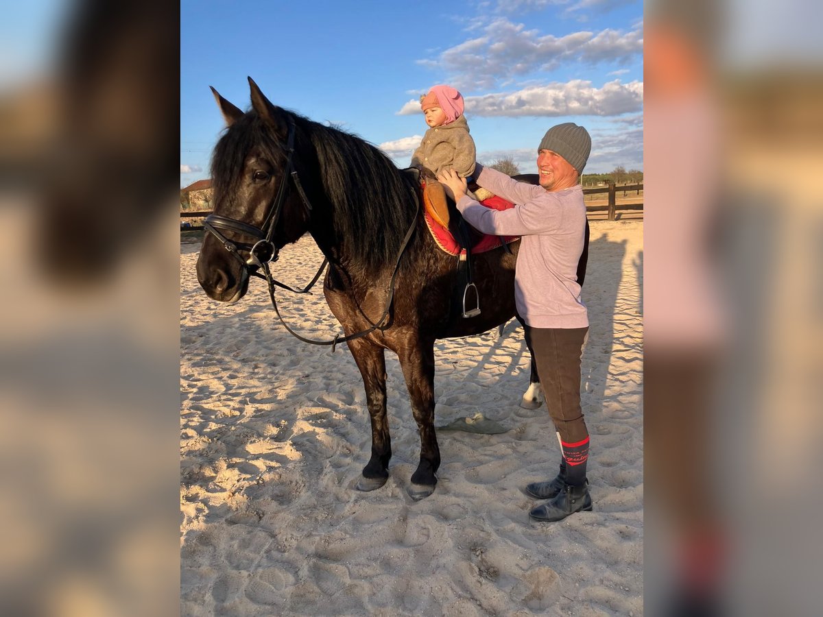 Zum Verkauf steht eine 6-jährige Rappstute vom kräftigen Typ mit einem Stockmaß von ca. 1,60 m. Sie ist kompakt gebaut, gut bemuskelt und sehr tragfähig – somit auch für einen etwas schwereren Reiter bestens geeignet.