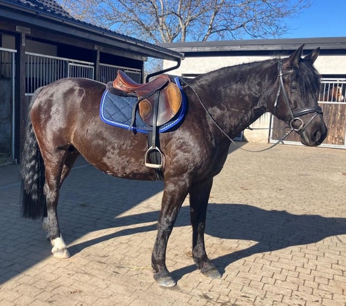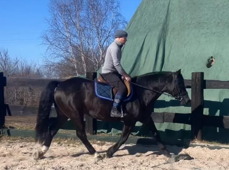 Zum Verkauf steht eine 6-jährige Rappstute vom kräftigen Typ mit einem Stockmaß von ca. 160 cm. Sie ist kompakt gebaut, gut bemuskelt und sehr tragfähig – somit auch für einen etwas schwereren Reiter bestens geeignet. Die Stute ist korrekt angeritten und sicher in den drei Grundgangarten zu reiten. Sie zeigt sich brav, ruhig und zuverlässig und ist daher auch für Kinder sowie weniger erfahrene Reiter unter fachkundiger Anleitung geeignet. Im Gelände ist sie absolut unkompliziert, geht sowohl alleine als auch in der Gruppe und zeigt sich dabei nicht schreckhaft. Andere Nutztiere kennt sie und reagiert stets gelassen. In der Herde ist sie sozial und verträglich mit anderen Pferden. Eine angenehme, ausgeglichene und vielseitige Stute, die sich ideal als Freizeit- und Familienpferd sowie für die tägliche Arbeit eignet. Standort: Polen, ca. 70 km von Görlitz entfernt (ca. 40 Minuten). Transport: möglich.