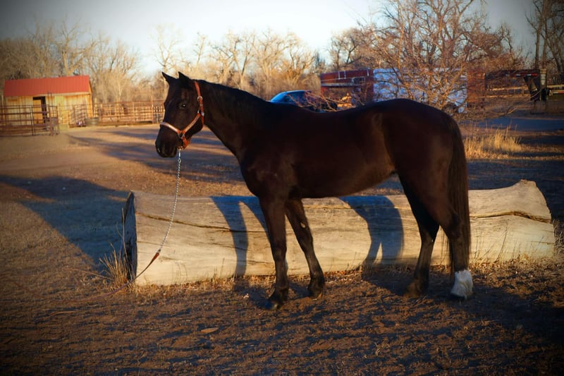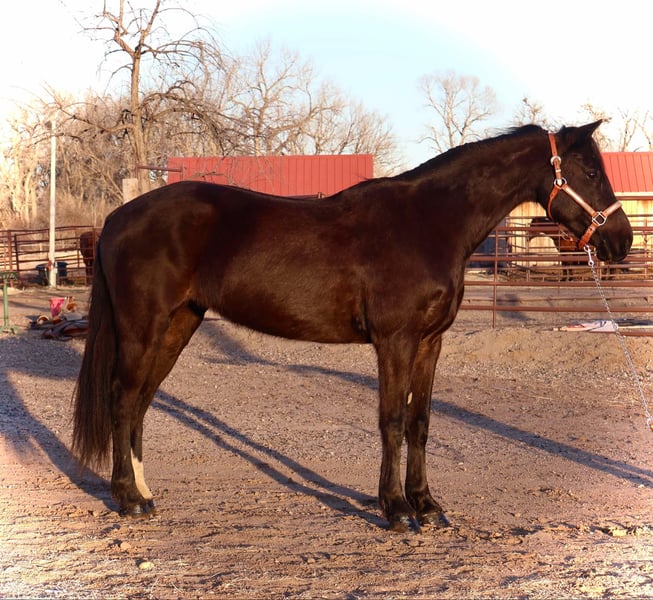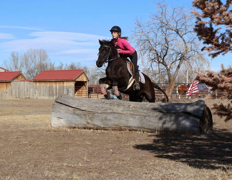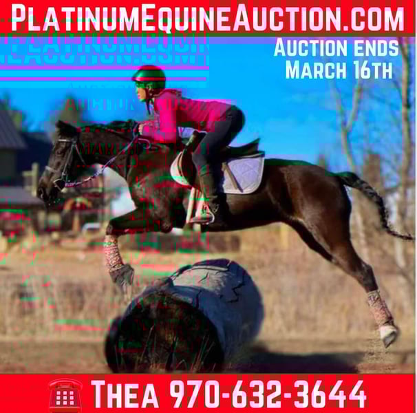 ONLINE AUCTION Place your bids at www.PlatinumEquineAuction.com Starting Bid $3500 Auction ends March 16th, 2025 Need a new saddle? Check out White Rock Saddles on our website or Facebook! Raja is a 6 year old jet black Quarter pony who stands at 14 hands and has an absolute heart of gold! This pony has a ton of try, is extremely sweet, first one to meet you at the gate and gets along with all other horses and livestock! Raja is VERY safe, calm and sweet for the whole family but is also versatile enough to be competitive in lots of disciplines. Raja has a great walk/jog/lope in the arena, will stop off of just your voice and is light and supple in the bit. Raja goes English or western and knows her collection and frame up, has great tuck and scope over a course and has already jumped up to 2’3 with room to improve. Raja would make a very cute 4-H or pony club prospect! Raja has been trail ridden all over as well, Up in the mountains, downtown Fort Collins you name it, she’s seen it. She is excellent in a group or by herself, she is not herd bound and will lead or follow. Raja has seen bikes, lots of traffic, town commotion, wildlife, etc. Raja will cross anything you put in front of her and is not scared of flags/tarps etc! She loves the water, has crossed rivers and bridges and we’ve even taken her swimming! Raja is the absolute perfect size for a small adult or kiddos wanting to get started in their new equine adventure or further their skills and looking for a step up pony! Check out rajas video and come see this sweet mare! Located in Fort Collins, CO. Contact Dynamite Horses Thea 970-632-3644 with any questions. ONLINE AUCTION Place your bids at www.PlatinumEquineAuction.com Starting Bid $3500 Auction ends March 16th, 2025 Need a new saddle? Check out White Rock Saddles on our website or Facebook!