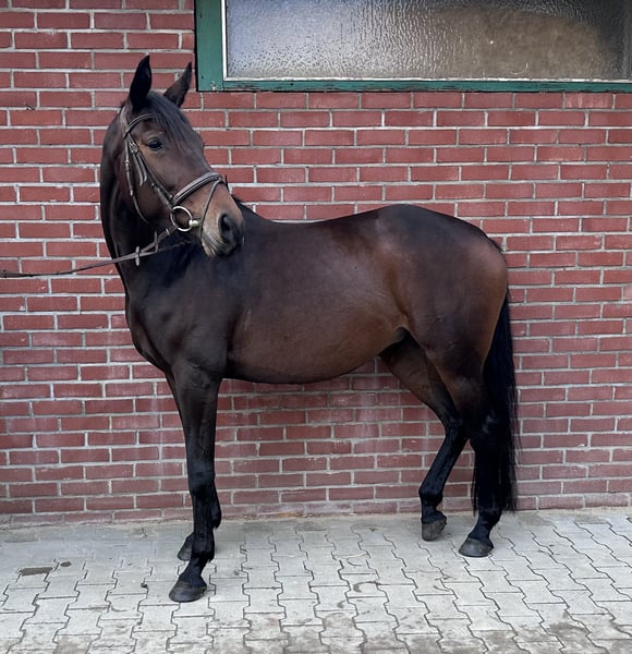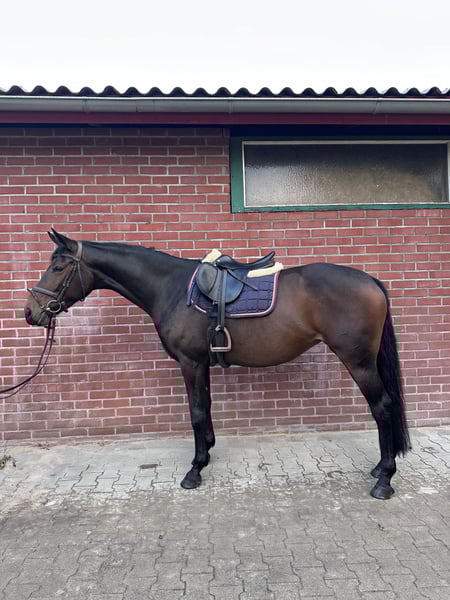 For sale is my mare Lou (7 years old). She was gently started under saddle at the age of 4 and had longer breaks due to the previous owner's pregnancy. For the past six months, she has been in professional training, has a solid basic education, and shows herself to be very eager to learn, hardworking, and willing to perform. We have now started jumping, and she impresses across the board in this area as well – also interesting for eventing! Franziskus is the top dressage horse of Ingrid Klimke: https://hengststation-holkenbrink.de/produkt/franziskus-frh/ Lou is sensitive, typically mare-like, needs a clear, loving hand, and is therefore not suitable for beginners – unless with regular professional support. Highlights: - Top pedigree: Franziskus x Quinto - Solid basic training – fresh in training and very eager to learn - Provides a secure, good feeling at the jump – ideal for dressage, jumping, and cross-country - Fearless in the field, strong nerves, and equipped with a lot of courage - Very good hoof quality, currently runs barefoot without any issues - In very good overall condition – a veterinary check will be conducted next week Particularly noteworthy is her excellent pedigree and her great diligence – Lou always wants to please and impresses with her willingness to perform. A horse that brings joy to its rider today and offers enormous development potential for the future. Price: €14,000 – including 1 month of full training. Further training will be tailored individually according to the new owner's wishes – dressage, jumping, or cross-country. ➡️ Lou is waiting for a person who recognizes her potential and continues to support her. Viewings and trial rides (25 euros) can be arranged by appointment.