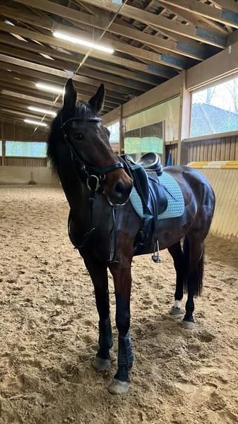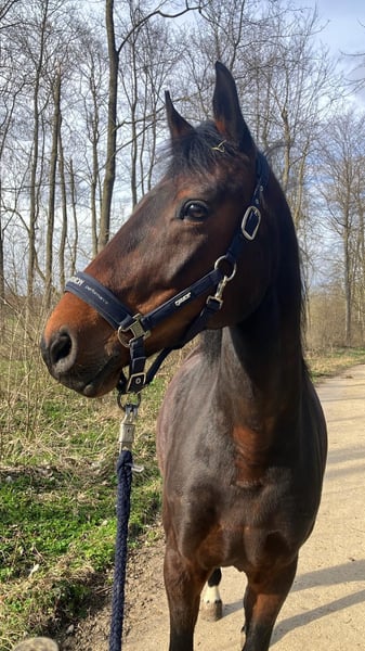 I am reluctantly seeking a new home for my mare. Lotti is 8 years old, approximately 16.1 hands tall, and has been in my care since she was 3. Unfortunately, due to a hoof capsule issue, she is no longer fully sound for demanding work. She is incredibly sweet in handling, enjoys groundwork and walks. Currently, she is mostly ridden in the terrain (all gaits), where she behaves well in company; she does not like to go out alone, but I have never specifically trained her for that. Further details regarding diagnosis, etc., can be provided by phone. I can easily imagine someone who works a lot with her on the ground and takes her out on rides. While she is friendly, she is only conditionally suitable for beginners, as she tends to be somewhat environmental when ridden. However, I have never experienced bucking, rearing, or going through with her. I am offering her for sale if everything feels right—price is less important than finding the right home! No full box stall confinement. Lotti is used to an open stable environment and feels very comfortable there. Since I am very attached to her, I might also consider offering her on a loan basis, depending on location and financial participation. I bought Lotti as a riding horse, but since I already have a retiree, I cannot keep a second semi-rideable horse in this condition. Whether breeding is possible or worthwhile should be discussed with a veterinarian; her pedigree and conformation could make that an option. Feel free to contact me by phone, WhatsApp, or message. We are offering her at two locations: currently in Ulm, with all our horses also in Ulm and near Monheim (Bavaria).