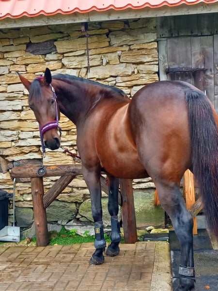 Introducing a stunning 2016 bay mare, standing at 165 cm, and ready to take your dressage ambitions to the next level! This elegant Warmblood combines beauty, athleticism, and a gentle temperament, making her an ideal partner for riders of all levels. Suitable for childrens,for beginners and for amateur. Ready for M level,jumping till 70 cm,like eventing. She is sound, healthy, and ready for her next chapter. Whether you are looking to compete or enjoy leisurely rides, this mare is sure to impress. We have 3 days old vet check!
