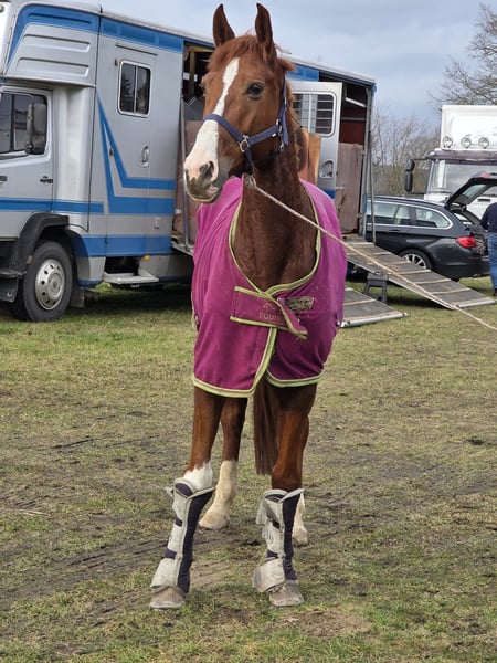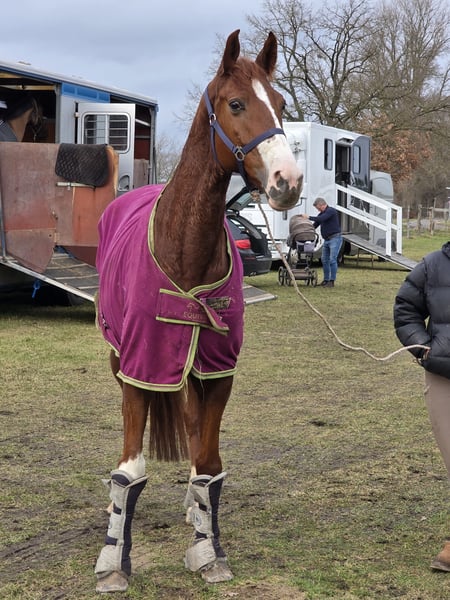 Pheline – Talented Show Jumping Horse with Great Potential Pheline is a motivated show jumper with significant potential and a clear enthusiasm for jumping. She demonstrates a lot of scope, awareness, and good technique, making her a promising partner for competitive jumping. Under saddle, Pheline is attentive, quick to respond, and consistently motivated. She thinks along with her rider, approaches jumps boldly, and impresses with her positive attitude and ambition. Her strength is especially evident in the course: powerful take-off, quick reflexes, and a good sense of distances. Ideal for riders seeking an ambitious jumping horse with prospects. She has the right attitude for training and competition. In handling, she is well-behaved. She is also well-mannered under saddle. A motivated and ambitious horse with quality, suitable for sensitive riders willing to adapt to the horse. With the right care, she will develop further in higher classes (M/ S) and bring a lot of joy. Pheline also has good basic gaits and enjoys and reliably goes out into the field. She is relatively unspoiled, having initially been used in breeding and only entering sport later. She was immediately placed in an A** jumping class with a young girl, which definitely sparks enthusiasm for more. She gets along well with other horses and loads easily. A horse that has many fans here. 9 years old, 16.1 hh Clinical examination and X-rays available. Video: https://youtu.be/FryHJfiijF0?si=HvXksuZ8J2-lEoi0 More photos, videos, and insights into our horses' daily lives can be found on Instagram: [maresi_lange]. Feel free to visit and get to know our four-legged friends a bit better in advance. You can find additional photos, videos, and small glimpses into our horses' everyday life on Instagram: [maresi_lange]. Please visit and familiarize yourself with our horses beforehand. Further horses are available on my website MaresiLange.de or upon request. The description of the horse is based on subjective impressions and our experiences and does not constitute a guarantee of properties or qualities. Trial riding is at your own risk. The sale is carried out on behalf of the owner. For the presentation or trial riding of the horse, we reserve the right to charge a fee of 30 euros, which will be deducted from the purchase price if the horse is sold.