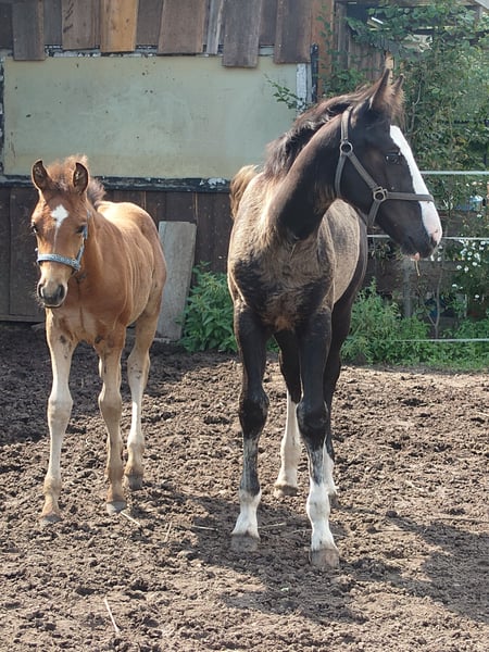 Hallo , wir haben einen kleinen Herzensbrecher abzugeben. Der kleine Mann kam im Mai zur Welt und hat schon das Herz von allen für sich gewonnen. Seine Mama ist eine Braunschimmel und ca 1,50m groß sein Papa ist ein Barock Pinto Hengst braun Schecke drei farbig und ca 1,58 m groß und hat 50% Friesen Anteil. Beide Eltern sind charakterlich wirklich 1a. Von dem Hengst gibt es schon einige Nachzuchten und diese sind auch alle top Pferde. Der kleine Mann wird später auch ein Schimmel und im barocken Typ stehen. Bei uns wächst er im Herden verband auf und lernt bis zum Auszug das Fohlen Abc. Der kleine Mann ist zum Auszug geimpft. Er hat bis zum Auszug regelmäßig Wurmkuren erhalten und besitzt dann natürlich seinen equidenpass. Er kann nach Kauf jeder Zeit weiterhin besucht werden und selbst mit ihm auch was gemacht werden. Ein Kauf erfolgt mit schriftlichen Kaufvertrag.