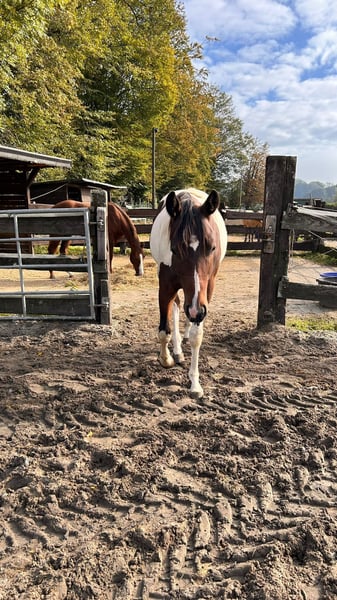 Te koop: een prachtige Paint Horse ruin, geboren in 2023. Met een verwachte schofthoogte van 152 cm en zijn opvallende Tobiano-vachtpatroon in alle kleuren is hij een echte blikvanger. Van hoofd tot staart is de lieve Rudi een echt hartendief. Deze getalenteerde ruin is uitstekend geschikt voor de discipline Reining en toont al veelbelovende kwaliteiten. Hij is vriendelijk in de omgang en heeft een rustig, evenwichtig karakter, wat hem een ideale partner maakt voor ruiters van alle ervaringsniveaus. Hij is ook goed te laden en hoefsmid-vriendelijk. Hij groeit op in een diervriendelijke omgeving met 24/7 weidegang in de zomer en in de winter de hele dag op de paddock en 's avonds op stal. Hij is uitstekend gesocialiseerd. De verkoop vindt plaats in goede handen die hem een liefdevol thuis kunnen bieden (graag ook ter plaatse op de stal). Door plotselinge beroepsveranderingen moet ik helaas van hem afzien. Ik zou het ook fijn vinden als een verzorging of ruiterbijdrage voor later misschien mogelijk zou zijn, afhankelijk van de locatie. Bij interesse of verdere vragen hoor ik graag van u!