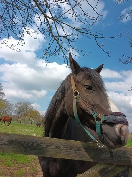 Zwarte roan – geboren op 02/06/2017 – ongeveer 1m60 Black Diamond is een prachtige 8-jarige merrie, van Amerikaanse afkomst en Paint Overo (niet geverifieerd). Ze is vrijwillig en vriendelijk, en zoekt een regelmatige ruiter die haar tijd en aandacht kan geven. • Discipline: ideaal voor ritten, processies, ze springt een beetje over hindernissen. • Dressuur: ze heeft behoefte aan vooruitgang met een ruiter die haar kan onderwijzen en laten evolueren. • Karakter: aanhankelijk, intelligent en vol potentieel, ze is geschikt voor een geduldig en gepassioneerd persoon. 👉 Een mooie kans voor een ruiter die zich wil inzetten en een echte band met zijn paard wil opbouwen.