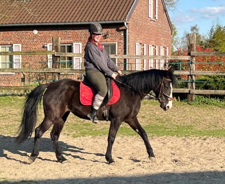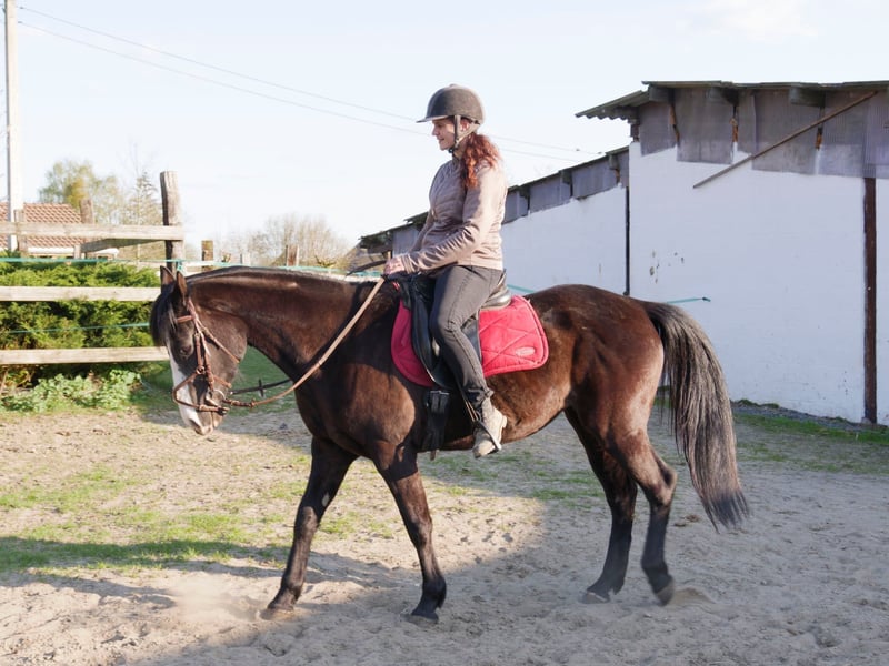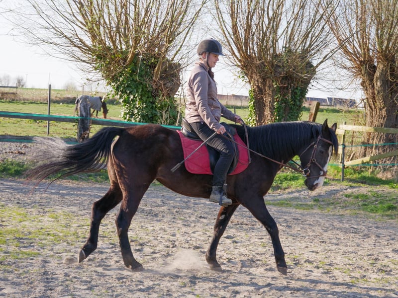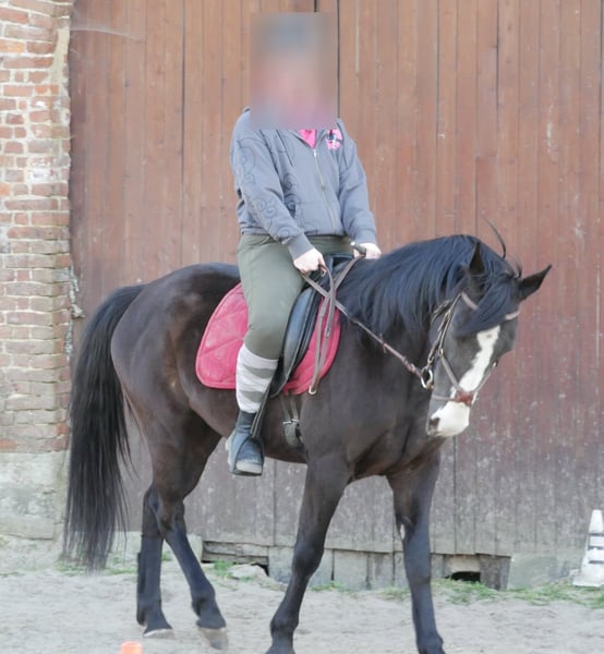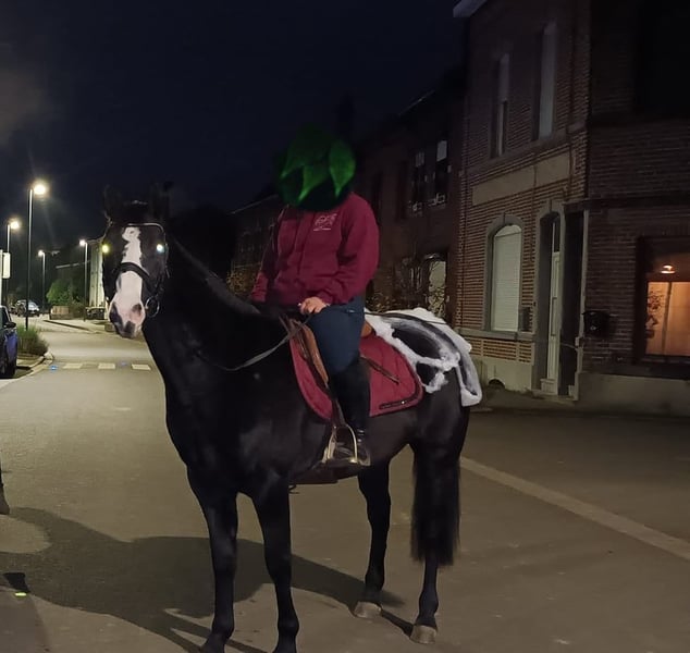 Black mare – born on 06/02/2017 – approximately 1.60m Black Diamond is a stunning 8-year-old mare, of American origins and Paint Overo (not verified). She is willing and kind, and is looking for a regular rider who can dedicate time and attention to her. • Discipline: ideal for trail riding, parades, she jumps a little over obstacles. • Dressage: she needs to progress with a rider capable of teaching her and helping her develop. • Character: endearing, intelligent, and full of potential, she will suit a patient and passionate person. 👉 A great opportunity for a rider who wishes to invest and create a real bond with their mount.