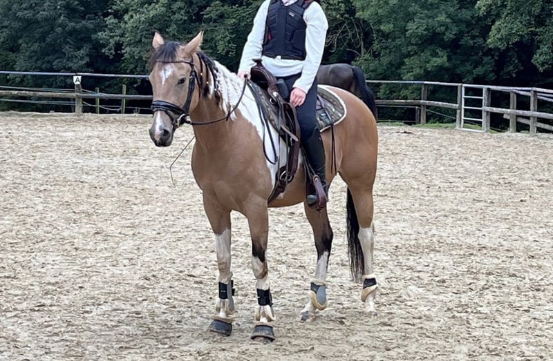 Verkaufe liebevolle Paint Horse Stute Zum Verkauf steht meine wunderschöne Paint Horse Stute, geboren im Jahr 2017. Sie besticht durch ihr beeindruckendes Tobiano-Farbmuster, das alle Farben vereint und sie zu einem echten Blickfang macht. Mit einem Stockmaß von 165 cm ist sie perfekt proportioniert und vielseitig einsetzbar. Ihre Leidenschaft sind Cavalettis und Ausritte in entspannter Form aber auch mal zum Gas geben. Sie ist ideal für die Freizeitgestaltung und eignet sich sowohl für gemütliche Ausritte als auch für anspruchsvollere Ausflüge. Sie ist sowohl im Dressur als auch im Westernsattel zuhause. Sie bringt die Basics für beide Spaten mit, da sie nicht Profimäßig eingeritten wurde. Wir haben das schonend und langsam im Alter von 5 Jahren gemacht und reiten sie seitdem immer nur sporadisch. Die Stute ist neugierig und frech, aber stets freundlich, menschenbezogen und gut im Umgang. Spaziergänge und Ausritte macht sie brav mit. Hallen und Platzarbeit möchte sie gerne schmackhaft gemacht bekommen. Z.B. mit Stangen und abwechslungsreichen Aufgaben. In Kreis laufen ohne Aufgabe findet sie blöd. Idealerweise wünsche ich mir für sie eine Bezugsperson die sich die nötige Zeit für sie nehmen kann und sie in einem Offenstall einstallt bzw. so dass sie tagsüber draußen stehen kann. Boxenhaltung kommt nicht in Frage. Sie liebt Kinder, ich möchte sie allerdings nicht als Anfängerpferd verkaufen. Die Stute ist nicht im regelmäßigen Training und wird nur sporadisch geritten aufgrund von Zeitmangel. . Es gilt definitiv Platz vor Preis. Geld spielt hier keine Rolle. Sie soll das beste Zuhause bekommen. -> Endplatz Bei Interesse oder weiteren Fragen stehe ich Ihnen gerne zur Verfügung. Ein persönliches Kennenlernen ist jederzeit möglich.