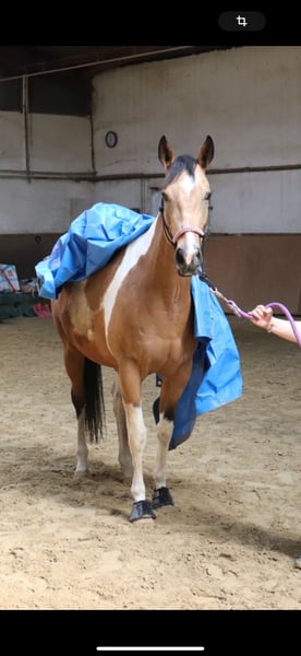 Te koop: Liefvolle Paint Horse merrie Ik bied mijn prachtige Paint Horse merrie te koop aan, geboren in 2017. Ze valt op door haar indrukwekkende Tobiano-kleurpatroon, dat alle kleuren combineert en haar tot een echte blikvanger maakt. Met een stokmaat van 1,65 m is ze perfect in verhouding en veelzijdig inzetbaar. Haar passie ligt bij cavaletti en ontspannen buitenritten, maar ze kan ook af en toe flink gas geven. Ze is ideaal voor recreatief gebruik en geschikt voor zowel rustige ritten als meer uitdagende tochten. Ze voelt zich thuis in zowel dressuur- als westernzadel. Ze beschikt over de basisvaardigheden voor beide disciplines, omdat ze niet professioneel is gereden. Dit hebben we op een zachte en rustige manier gedaan toen ze 5 jaar was, en sindsdien wordt ze slechts sporadisch bereden. De merrie is nieuwsgierig en ondeugend, maar altijd vriendelijk, mensgericht en goed in de omgang. Wandelen en buitenritten doet ze braaf mee. Binnen en op de piste wil ze graag gemotiveerd worden, bijvoorbeeld met stangen en afwisselende oefeningen. Zonder opdracht in cirkels lopen vindt ze saai. Ideaal zou ik vinden dat ze een eigenaar krijgt die de tijd voor haar kan nemen en haar in een open stal houdt of zo dat ze overdag buiten kan staan. Boxenhuisvesting is geen optie. Ze is dol op kinderen, maar ik wil haar niet als beginnerspaard verkopen. De merrie krijgt niet regelmatig training en wordt vanwege tijdgebrek slechts sporadisch bereden. Platz prioriteit boven prijs. Geld speelt geen rol. Ze verdient het beste thuis. Bij interesse of voor meer informatie sta ik graag voor u klaar. Een persoonlijk kennismakingsgesprek is altijd mogelijk.