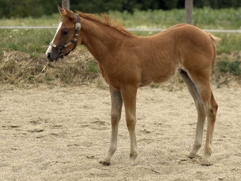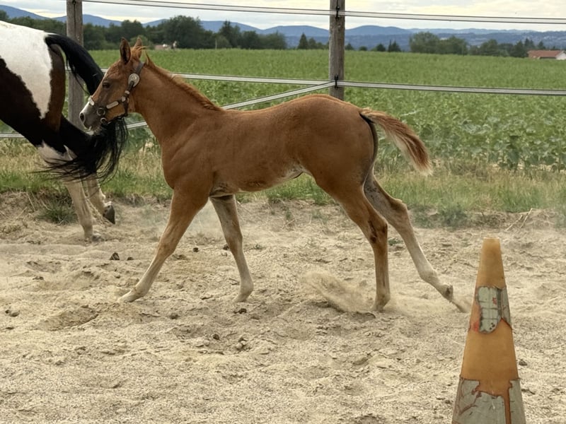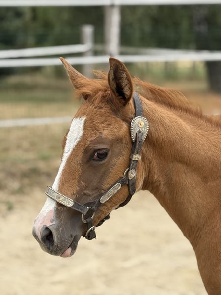 Fohlen Paint Horse Sorrel Overo Minimal Ihr Vater Have A Mass Day, 5. beim Europameisterschaft, 6-facher regionaler Champion, er setzt seine Karriere in mehreren Disziplinen fort. Ihr Vater Mister Sacred, Weltmeisterhengst, und stammt von dem bekannten Sacred Indian ab. Ihre Mutter WM Ladys Assets, eine Stute, die in ihrer Jugend im Showbereich konkurrierte, wo sie im Showmanship, Horsemanship und Pleasure gewann. Sie nahm auch an der Europameisterschaft unter dem Sattel teil. Ihr Großvater ist der große Hes Got The Assets (APHA Reserve Weltmeister Western Pleasure, mehrfacher Superior, Amateur Versatility, APHA Verdiener von über 600 Punkten). Qualitätsfohlen, für ein 5⭐️ Zuhause. Negativ auf Panels und wird auf LWO getestet.