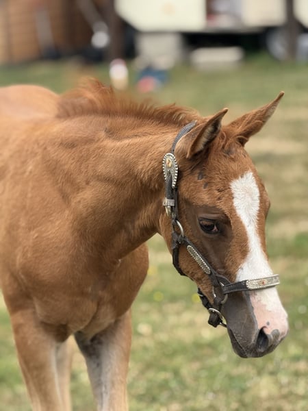 Sorrel overo Paint horse filly Her father is Have A Mass Day, 5th at the European Championship, 6-time regional champion, and he continues to compete in several disciplines. Her sire is Mister Sacred, a world champion sire, and is by the well-known Sacred Indian. Her mother is WM Ladys Assets, a mare who competed in shows at a young age where she won in showmanship, horsemanship, and pleasure. She also participated in the European Championship under saddle. Her grandfather is none other than the great Hes Got The Assets (APHA Reserve World Champion Western Pleasure, Multiple Superiors, Amateur Versatility, APHA earner of over 600 points). Quality filly, for a 5⭐️ home. Negative on panels and will be tested for LWO.