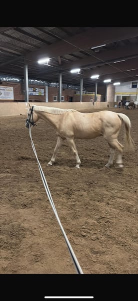 Stylish Palomino Gelding Expressive 18-year-old Palomino, 14.2 hands, with good pedigree. He was trained quite late under saddle as a riding pony, so he is not a fully seasoned children's pony. In handling, he is very straightforward and easy to manage. When riding, he requires confidence from the rider, but well-balanced older children or teenagers also enjoy riding Tango. He rides well with draw reins and can, of course, be ridden without them by more advanced riders. Very easy to work with on the lunge line. Price negotiable Location before price Riding videos available. Phone: 0163 8564070