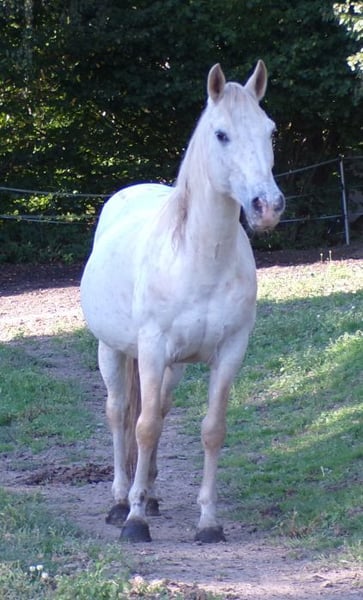 Notre Jimmy est un cheval sensible et délicat, facile à mener même avec des enfants, et il ne présente pas de problème de clôture électrique. Il possède un Tölt exceptionnel, bien qu'il n'ait pas été monté depuis huit ans. Lorsqu'il est stressé, il commence à piaffer, mais chez nous, il vit en troupeau en paddock extérieur, où nous n'avons pas rencontré ce problème. De plus, il a une fissure dans le bourrelet du sabot antérieur droit, mais cela ne lui cause pour l'instant aucune difficulté.