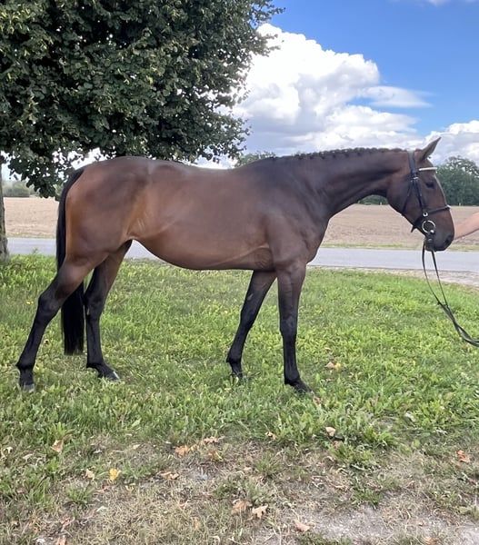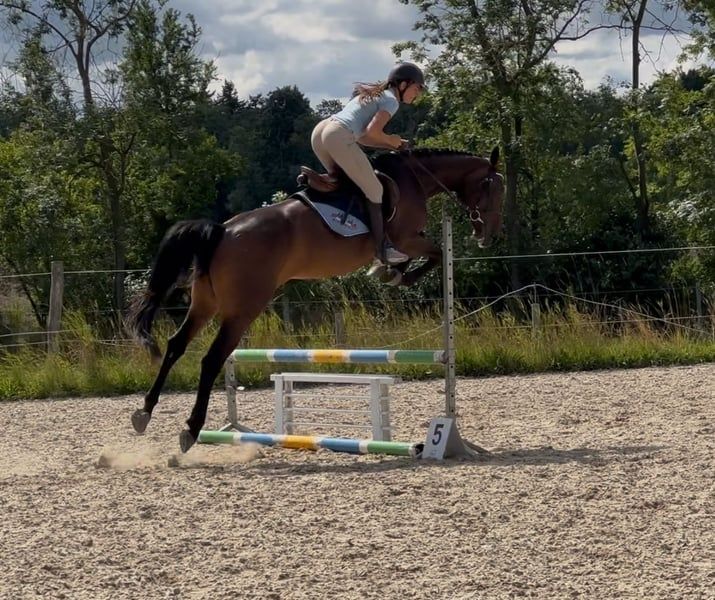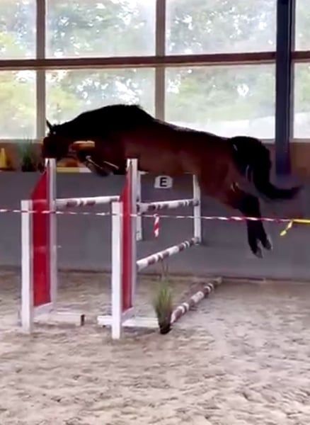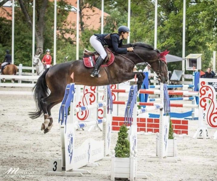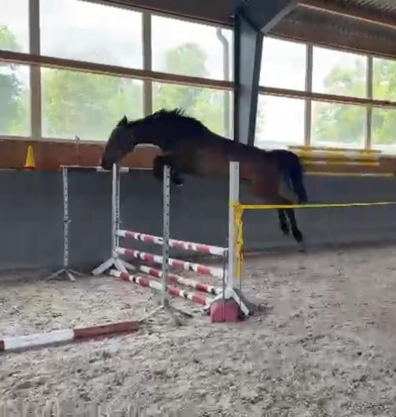 Mother was successful in international sport up to 145cm. Her daughter has a top character. Super sweet. Problem-free. Just started under saddle and has jumped 3 times with a rider, 1 time in the field super brave! Has a very good canter and jumps everything that is in front of her. In free jumping (tried twice up to 130cm). Good X-rays. She is very easy to ride. More info, pictures or videos via WhatsApp :)
