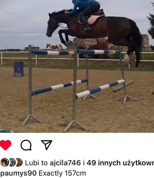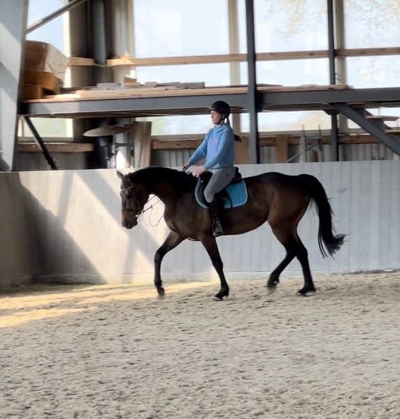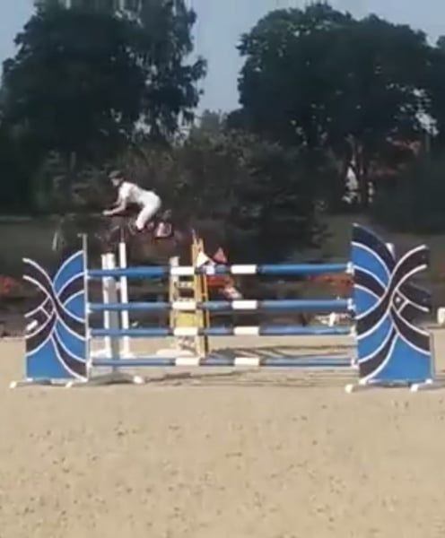 Matka odnosiła sukcesy na arenie międzynarodowej w dyscyplinie skoków przez przeszkody do 145 cm. Jej córka ma świetny charakter, jest bardzo przyjazna, spokojna i bezproblemowa. Aktualnie jest w trakcie nauki jazdy i trzy razy skoczyła poniżej siodła, raz w terenie i była bardzo grzeczna! Doskonale galopuje i skacze wszystko, co stoi na drodze. W próbach wolnego skoku (próbowano dwukrotnie do 130 cm) radzi sobie świetnie. Ma dobre zdjęcia rentgenowskie. Jest bardzo łatwa w jeździe (pokazuje, że potrafi iść na polecenie jeźdźca). Więcej informacji, zdjęć lub filmów na WhatsApp :)