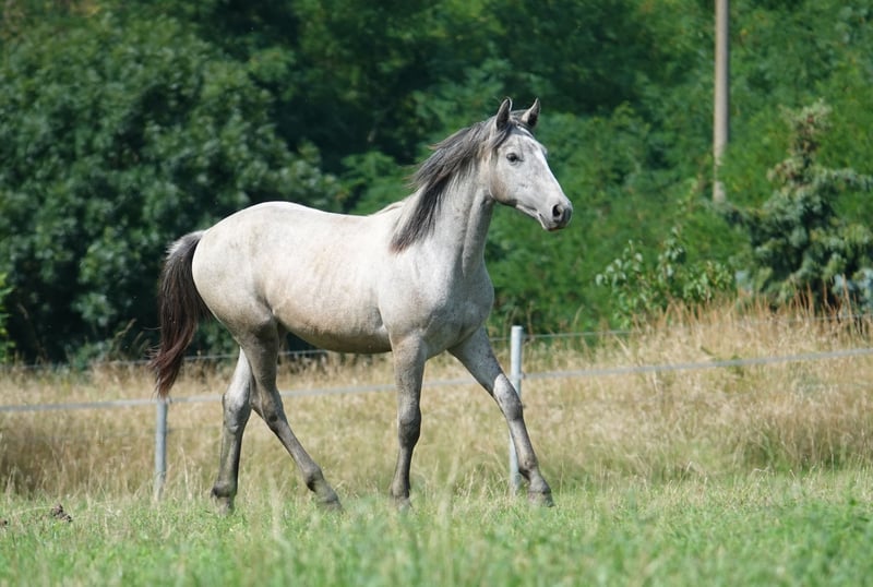 Connemara Wallach, geboren im Juli 2024, von Diamant 424 aus Skaergardens Spicy Love, einer Stute, die aus Dänemark importiert wurde. Vater Diamant 424 ist der Champion der 1. tschechischen Connemara Pony Show in der Tschechischen Republik 2019, mit nachgewiesener sportlicher Leistung in allen drei Disziplinen (Dressur S, Springen T, Vielseitigkeit S) und verifiziertem Nachzuchterfolg. Erfolgreich in Zucht und Sport auch in Deutschland. Mutter Spicy ist eine elegante Stute aus einem herausragenden dänischen Zuchtprogramm, mit eigener Leistung in der Dressur. Larry hat alle Qualitäten für den Sport: ein gesundes, selbstbewusstes Pony mit Sprungpotential, hervorragender Bewegung und einem tollen Charakter. Regelmäßig geimpft, entwurmt, Hufe bearbeitet und ohne Probleme im Umgang. Hauptsächlich auf der Weide aufgezogen. Geschätzte Höhe am Widerrist: 144–146 cm. Die letzten beiden Fotos zeigen die Mutter und den Vater.