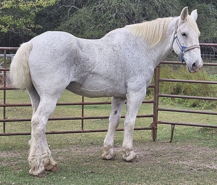 Este es un hermoso y dulce caballo Percheron, ideal para montar. Le encantan las mentas y con gusto las acepta antes y después de cada paseo. Tiene 12 años y mide aproximadamente 17,1 manos. Su prueba de coggins está al día. Nosotros estamos en Picayune, Mississippi.