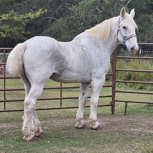 C'est un beau hongre Percheron doux, un excellent cheval à monter. Il adore les menthes et les prendra volontiers de votre main avant et après chaque balade. Il a 12 ans et mesure 1,73 m. Son test de Coggins est à jour. Nous sommes à Picayune, MS.