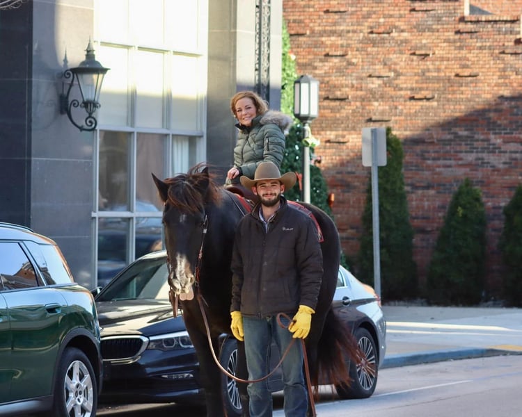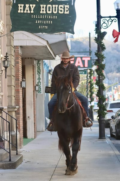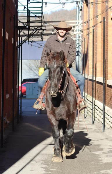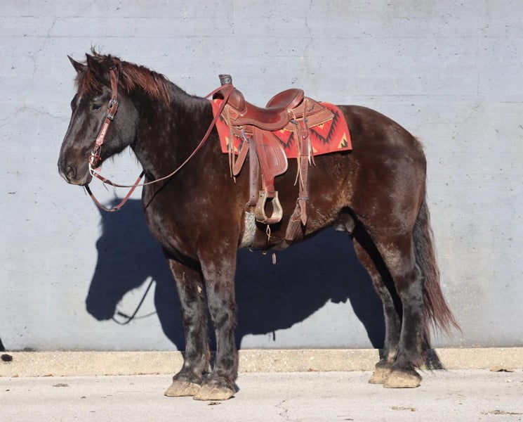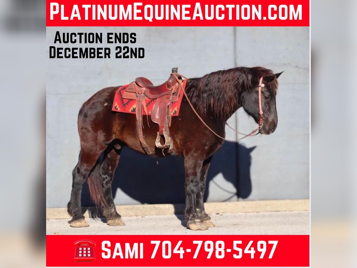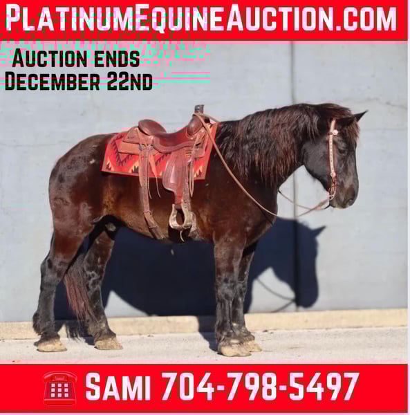 ONLINE AUCTION Place your bids at www.PlatinumEquineAuction.com Starting Bid $3500 Auction ends December 22nd, 2024 Need a new saddle? Check out White Rock Saddles on our website or Facebook! Amos Moses is a 14 year old, 18.2 hand Percheron gelding. He is the true definition of a gentle giant with a big ole Teddy Bear personality. His big head just begs you to give him a huge hug and kiss on the nose. Amos is quiet, safe, and gentle for any size or level of rider. He has spent time on the beaches of North Carolina doing beach rides for tourists. There is no experience required for someone to be able to ride him. But don’t let that part of his resume fool you, he is very well broke to ride and fun for someone with more experience. He will neck rein like a quarter horse and moves off leg pressure. Amos backs and side passes with ease. He is happy to amble down the trail or beach, or you can kick him up into a smooth jog. Loping isn’t his favorite gait, but understandably so as he more the size of a large tour bus, not a sports car. However, he can navigate tight spaces with ease and without getting frazzled. In fact, we haven’t found a single thing that gets Amos upset. He is 100% traffic safe. Along with riding, Amos also drives single and double and has done carriage rides. Have a big family? Line the kids up all the way down his back and send them off for the day. He is a true babysitter. Amos has countless miles on the trails, and rides out alone or in the group. He doesn’t have to be a head to tail kind of horse if you want to do more than that. Don’t worry about his size, you can use anything at your disposal to climb up on him either with a saddle or bareback. Amos is friendly and easy to catch. Stands to saddle and bridle and loads easily. Don’t hesitate to add Amos to your family. For more information, call or text Sammi Waugh 704-798-5497 Located in Brookesville, KY. ONLINE AUCTION Place your bids at www.PlatinumEquineAuction.com Starting Bid $3500 Auction ends December 22nd, 2024 Need a new saddle? Check out White Rock Saddles on our website or Facebook!