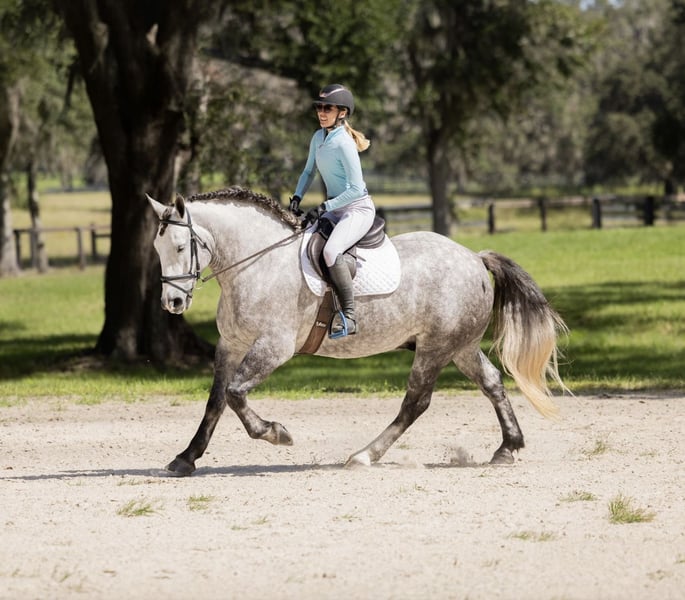 ⚜️𝐃𝐄𝐑 𝐅𝐀𝐋𝐋 𝐇𝐄𝐑𝐈𝐓𝐀𝐆𝐄 𝐒𝐓𝐀𝐌𝐌𝐄𝐑 ⚜️ Läuft jetzt bis MONTAG, 3. NOVEMBER – Exklusiv auf der Website von HorseBid verfügbar! Für weitere Details und zur Anmeldung besuchen Sie bitte: www.Horsebid.com VERKÄUFERKONTAKT: 3S Showing & Sales LLC 919-810-0760 STANDORT: Ocala, FL RASSE: Percheron x Quarter Horse Mischung ZULASSUNG: Nein NAME: Marshmallow FARBE: Grau HÖHE: ca. 1,55 m (15,3 hh) ALTER: 4 Jahre Geschlecht: Wallach 💛 Marshmallow 💛 1,55 m | 4-jähriger Percheron/Quarter Horse-Wallach, wird 5 Sicher • Stabil • Freundlich • Einmal im Leben Manche Pferde lernt man zu reiten. Andere scheinen einfach so geboren zu sein. Marshmallow gehört zur letzteren Kategorie. Er ist einer dieser seltenen Seelen, die Menschen zu verstehen scheinen – besonders jene, die ein bisschen mehr Zuspruch brauchen. Er trägt seinen Reiter nicht nur, sondern kümmert sich um ihn. Ob nervöses Kind, Anfänger oder jemand, der sein Selbstvertrauen wieder aufbauen möchte – Marshmallow begegnet ihnen mit Ruhe, Geduld und einer stillen Stärke, die man nicht lehren kann. Seine sanften Augen und sein freundliches Herz machen ihn zu einem besonderen Partner. Er reitet, fährt (einzeln und zu zweit), springt, geht Cross-Country, durchquert Wasser und meistert alle Hindernisse mit Leichtigkeit. Er ist ein zuverlässiger Begleiter auf Trails durch den Wald und die Straßen, ohne Aufhebens. Vollständig verkehrssicher und in jeder Hinsicht gesund. 🌟 Was ihn besonders macht: • Für Anfänger geeignet – ein Pferd, dem Sie vertrauen können, egal ob für Ihre Kinder, Gäste oder Reitanfänger • Reiten & Fahren – zieht einen Wagen genauso gern wie er einen Reiter trägt • Bombensicher – Verkehr, Hunde, Flaggen, Planen, Maschinen – nichts bringt ihn aus der Ruhe • Vielseitig – reitet englisch oder western, springt bis 90 cm, ideal als Jagdpferd, Unterrichtspferd oder zuverlässiger Trailpartner • Reaktionsschnell & gut ausgebildet – weich im Maul, reagiert auf die Schenkel, zeigt eine schöne Haltung • Unerschütterliches Temperament – bleibt gleich, egal ob nach Pausen, in neuen Umgebungen oder bei neuen Menschen • Hervorragende Bodenmanieren – lädt ein, wird angebunden, gebadet, steht für den Hufschmied bereit und begrüßt Sie am Tor Wir haben Marshmallow unseren schüchternsten Reitern anvertraut, und jedes Mal zeigte er sich ruhig und gelassen – als wüsste er genau, was sie brauchen. Er schenkt dieses Vertrauen frei und stellt kaum Forderungen. Er ist am glücklichsten, wenn er jemandem das Gefühl von Sicherheit vermitteln kann. Obwohl er wie ein Draft gebaut ist, ist Marshmallow leichtfüßig, natürlich ausgeglichen und reaktionsschnell. Er ist sportlich genug für Reiter, die reiten, springen oder jagen möchten, aber ebenso zufrieden, ruhig durch den Wald zu gehen. Marshmallow ist kein gewöhnliches „ruhiges“ Wallach. Er ist derjenige, den man jahrelang sucht – vielleicht nie wieder findet. Der, auf den Ihre Kinder aufwachsen, dem Sie Ihr Herz anvertrauen, und an den Sie sich immer erinnern werden.