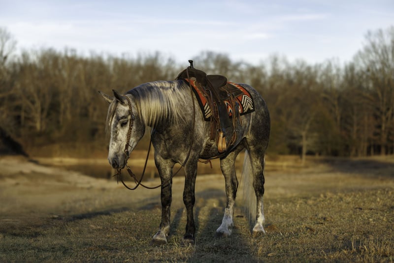 On the ground, he is refreshingly straightforward. Easy to catch, groom, saddle, bridle, mount, haul, and load. He stands quietly and respectfully for the farrier. Thor pastures well with others and is equally content in a stall or a paddock. His manners are reliable, his routine uncomplicated, and his presence in the barn is calm and confident.