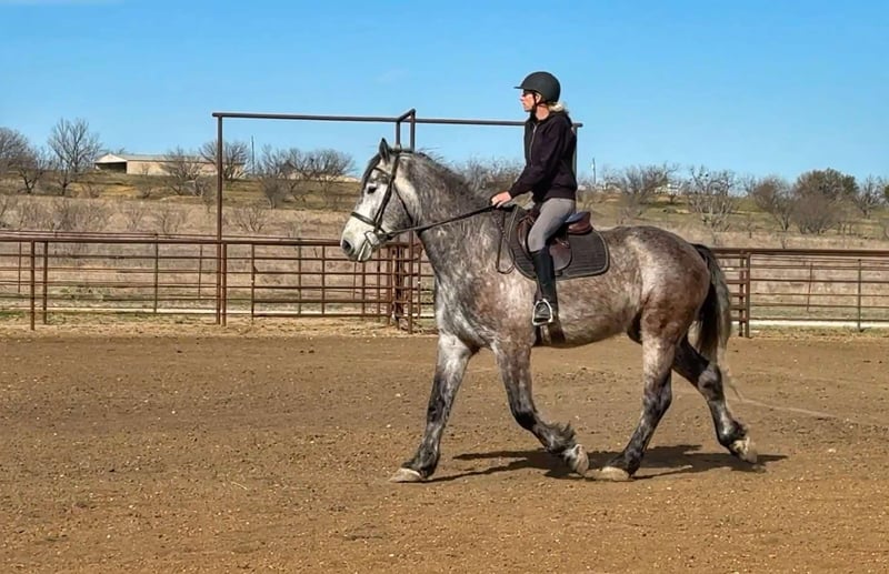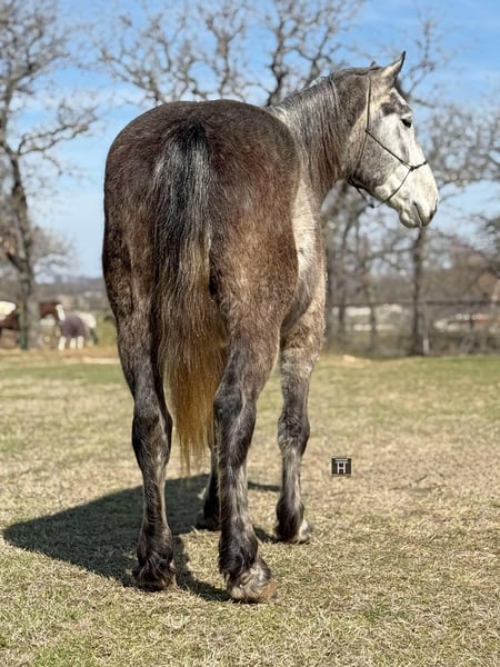 ONLINE AUCTION Place your bids at www.PlatinumEquineAuction.com Starting Bid $3500 Auction ends March 16th, 2025 Need a new saddle? Check out White Rock Saddles on our website or Facebook! Meet Garfield – a 16.1 Hand, 4 year old draft cross gelding. We absolutely love the gelding and have nothing but amazing things to say about him. He is GENTLE, kind, willing and very laid back. We feel that almost anyone could ride this guy. He is very easy to ride as well as handle on the ground. He rides Western, English, Drives single and double and is started over fences. He has a ton of potential as a fox hunter! We have taken him down the trails, freeways, and out to the ranch to both check cattle and just leisurely ride. He is not spooky, confident by himself, and a relaxing ride always. Garfield rides well in the arena and can walk, trot, and lope circles with a nice stop to him and natural collection. He is easy to catch, has great ground manners, loads, ties, bathes and is always on his best behavior. He is barefoot and sound/straight/clean legged. UTD. FMI call/text Holland Horse Co. Chanel 559-978-6320. We are located in Jacksboro, Texas and are happy to arrange shipping nationwide. ONLINE AUCTION Place your bids at www.PlatinumEquineAuction.com Starting Bid $3500 Auction ends March 16th, 2025 Need a new saddle? Check out White Rock Saddles on our website or Facebook!