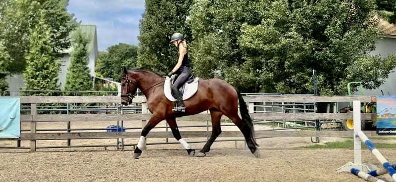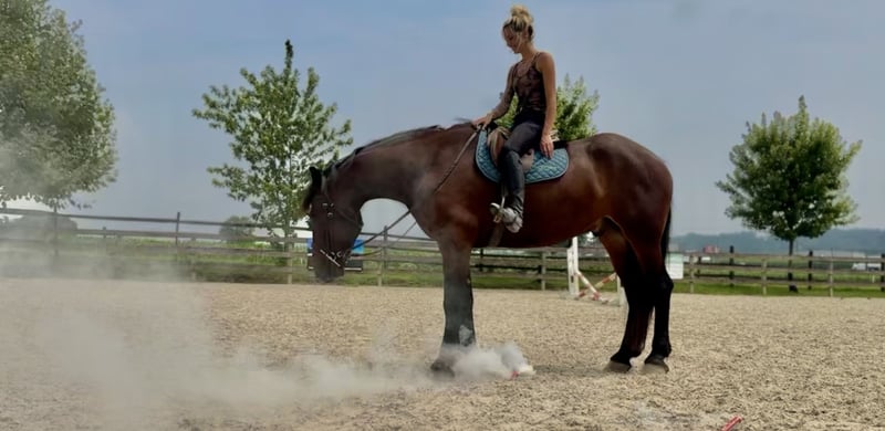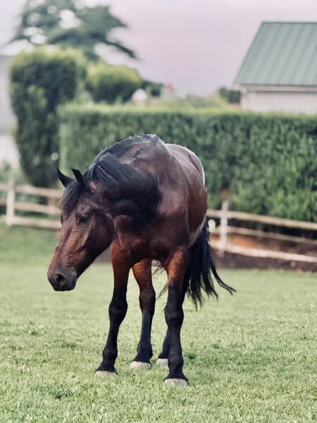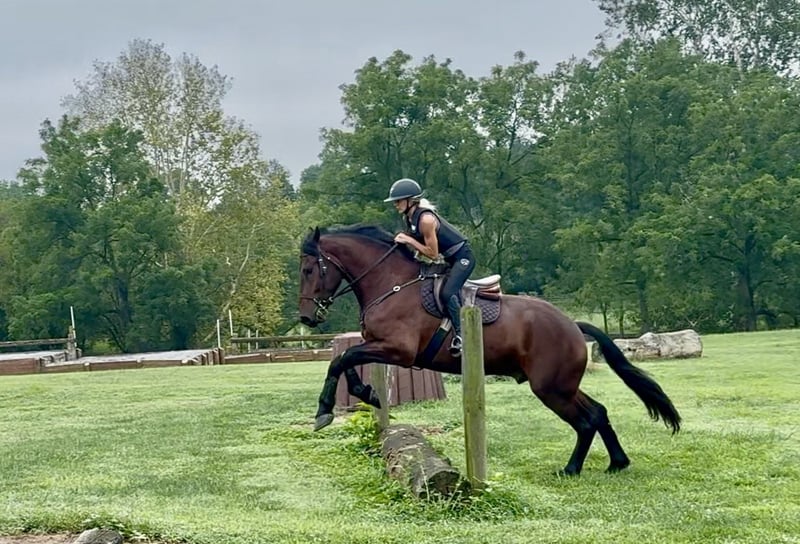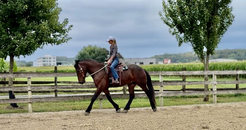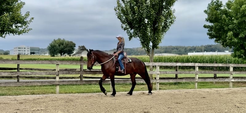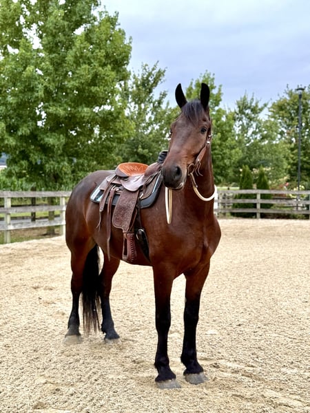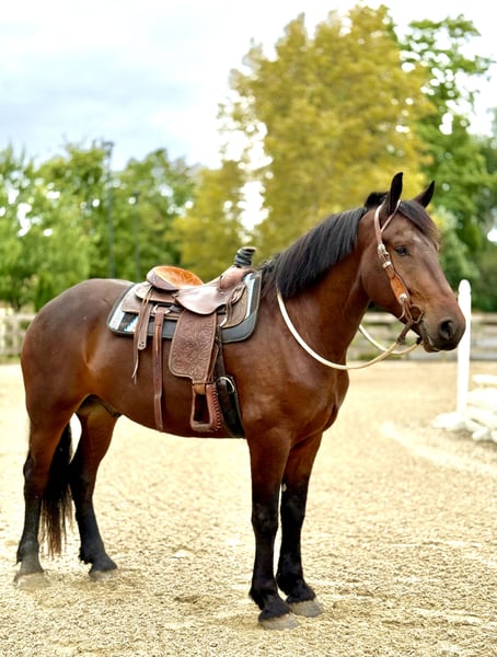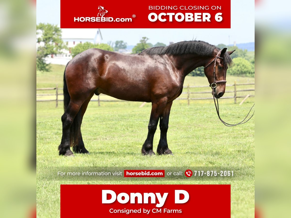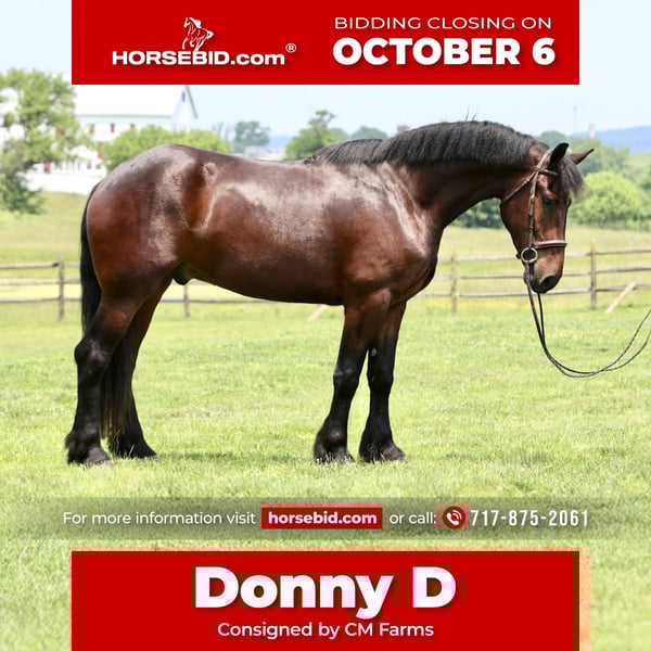 🍂 𝓐𝓾𝓽𝓾𝓶𝓷 𝑨𝑳𝑳 𝑺𝑻𝑨𝑹 𝑳𝑰𝑵𝑬𝑼𝑷 🍂 Happening now thru MONDAY | OCTOBER 6th - Available EXCLUSIVELY on HorseBid's website! For more details and to register visit: www.Horsebid.com CONSIGNOR CONTACT: CM Farms 717-875-2061 LOCATION: Gap, PA BREED: Perch/Friesian REGISTERED: No COLOR: Bay HEIGHT: 16.3 AGE: 4 GENDER: Gelding Donny D is a 4-year-old, 16.2–16.3hh Percheron/Friesian cross gelding. If you’re looking for a gentle giant, look no further. Donny is sweet as pie, sensible, and most importantly—safe. He’s a lovely cross of the two breeds: compact and sturdy, yet athletic with nice movement. This gelding is broke to ride English, Western, bareback, and to drive! With his kind personality and reliability, Donny would make the perfect husband horse, guest horse, or all-around safe partner to have around. On the trail, Donny has most of his miles—and he’s a fun ride to take out! He’s seen everything from deer popping out, cyclists and hikers passing by, loud traffic, and just about everything else you find on a busy trail. He loves to swim in the river and will splash and play in the water all day if you let him. Donny’s fun personality keeps you smiling. He’s the type of horse you can throw anyone on for a trail ride without worry. He goes through tunnels, up and down mountain trails, across open fields, and through creeks with no hesitation. He’s carried adult beginners in large and small groups, will happily lead or follow, and never rushes. If you want to crack a beer open and have a good time, Donny’s your guy. His go-to is to mosey along, but he’ll pick up a trot or canter and keeps up with a group well. He’s the same reliable horse every time you take him out—a truly safe, stress-free partner. In the ring, Donny has been started on the basics and is doing very well. He walk–trot–canters both directions, picks up both leads, and his canter is to die for! He tends to be more of a push ride, but not one you have to constantly keep after. His transitions are smoothing out nicely, and his canter is one of the best in the barn. He stops on a dime with a simple sit back or “whoa.” He’s learning balance, starting collection, and moving off the leg, and he picks things up quickly. Donny is forgiving of mistakes and can “take a joke,” making him suitable for a variety of riders. For his age, he’s doing all the right things, and he’ll be lots of fun for someone who wants a safe, fun horse to continue bringing along. In the barn, Donny has made himself a favorite. His favorite time of day is feeding time, and he’ll nicker when he sees you coming. Don always has a sweet gentle sparkle in his eye, and he is a true love-bug. He gets along well with his pasture buddies and is respectful during turnout and bringing in. He loads right into the trailer and is always ready for an adventure. He’s used to kids on the ground—he’ll stand all day for brushing, braiding, and attention. Donny is respectful in his stall, and for the dentist, farrier, and vet. He appreciates any attention and will happily soak up all the love you give him. Donny is an incredibly sweet gelding with a bright future—we’re excited to find him the best home! Donny is UTD on Shots, Coggins, Dentist, Farrier, and deworming.