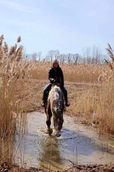 ONLINE-AUKTION Geben Sie Ihre Gebote auf www.PlatinumEquineAuction.com ab Startgebot 3500 $ Die Auktion endet am 25. Mai 2025 Brauchen Sie einen neuen Sattel? Schauen Sie sich White Rock Saddles auf unserer Website oder Facebook an! Lernen Sie Blackstone’s Big John kennen! John ist ein 17,1 hh einzigartig gefärbter rosegrauer und weißer Pinto-Drum-Hengst (Percheron, Spotted Draft, Gypsy Vanner X). Er ist so sanft wie ein Lamm. Seine Mähne und sein Schweif sind sehr dick und natürlich gewellt, und er hat eine wunderschöne Befiederung an allen vier Beinen. John ist 4 Jahre alt. Er ist groß, hübsch und das Beste ist, dass er ruhig ist! John hat ein schönes, typisches Gesicht und ein freundliches, ausdrucksstarkes Auge. Er ist der Typ Pferd, der Ihr Freund sein möchte. John ist so sehr wie ein übergroßer Welpe, dass er Ihnen über die Weide folgt und sogar beim Rufen herbeigelaufen kommt. Er ist wirklich ein bester Freund! Jeder kann ihn am Boden putzen, führen und handhaben. Er ist auch sehr leicht einzufangen und spielt gut mit anderen Pferden. John ist angenehm und ruhig unter dem Sattel. Er arbeitet in allen Gangarten ruhig mit aufmerksamen Ohren, während er entspannt und glücklich ist. Er kann im Schritt, Trab und Galopp gehen, kennt seine Führungen und bewegt sich auf Ihr Sitz- und Beinzeichen. Er ist aufmerksam, zeigt jedoch eine ruhige und fähige Zuversicht in allem, was Sie von ihm verlangen! Er hat umfangreiche Trail-Erfahrungen und wird in jede Richtung gehen, die Sie ihm zeigen. Er ist die Straßen entlang geritten und hat mit dem Kajak geschwommen. John hat auch einige leichte Erfahrungen über Hindernisse und ist mutig und tapfer gegenüber jedem Hindernis, drinnen oder draußen. Sie müssen kein gutes Auge haben, um diesen Jungen zu bewegen! Er reagiert nicht auf neue Zäune, Einrichtungen oder verschiedene Arten von Füllungen. Er wurde auf den Rückstraßen von Michigans wunderschöner Jagdregion geritten und würde im Fuchsjagd hervorragend abschneiden. Insgesamt ist John ein entspannter Reiter, aber er wird sich auf Ihre Stimme hin durch die Gänge bewegen. Er wurde zu verschiedenen Parks und Ausbildungsprüfungen transportiert und ist an neuen Orten sehr ausgeglichen! John ist auch zum Fahren ausgebildet und wird glücklich im Team oder allein arbeiten. Er ist ein Allround-Junge mit einem einzigartigen Aussehen und eine wahre Freude im Stall. Nur ernsthafte Anfragen und ein liebevolles Zuhause! Big John befindet sich in Howell, MI 48855. Rufen Sie Ellesse Schwartz unter 248-390-6831 an oder senden Sie eine SMS für weitere Informationen. ONLINE-AUKTION Geben Sie Ihre Gebote auf www.PlatinumEquineAuction.com ab Startgebot 3500 $ Die Auktion endet am 25. Mai 2025 Brauchen Sie einen neuen Sattel? Schauen Sie sich White Rock Saddles auf unserer Website oder Facebook an!