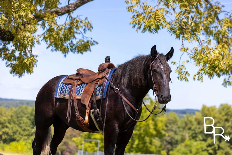 ONLINE AUCTION Place your bids at www.PlatinumEquineAuction.com Starting Bid $3500 Auction ends October 13th, 2024 Need a new saddle? Check out White Rock Saddles on our website or Facebook! Chubs…This absolutely stunning hunk will make you happy everyday. He is a steel grey Percheron./Quarter Horse cross . Stands a big 16.1 and a half hands tall at 4 years of age. Chubs has been a perfect gentleman since the first day he came into our program. This guy has a loving puppy dog personality. He is Lindsey Lee Blum favorite horse in our sale program to ride everyday.Will put his head in your lap like a puppy to be groomed everyday. Chubs is very easy to catch and comes running to the gate every morning. He rides well western and english in the arena with automatic lead changes. We have started him over fences and cross country. Which he thoroughly enjoys and is very brave. We can see a lot of fox hunting in his future. Chubs is what they call a trail horse specialist. There is not one obstacle he will not do. He rides very soft and easy in the arena and on the trail . Chubs has won several obstacles challenges he fears nothing. Very easy to manage ,shoe and care for around the barn . He is ready to go become someone’s horse of a lifetime. Totally UTD on farrier,dental, vetting with all necessary paperwork and vaccines ready to go. Comes with a pre-purchase evaluation from our licensed veterinarian. We have professional shipper that can haul nationwide. ‼️Call Mike at Beaver Ranch for more information 410-490-7384…..We encourage customers to come try our horses. You won’t be disappointed. Located in Mountain Grove, MO. ONLINE AUCTION Place your bids at www.PlatinumEquineAuction.com Starting Bid $3500 Auction ends October 13th, 2024 Need a new saddle? Check out White Rock Saddles on our website or Facebook