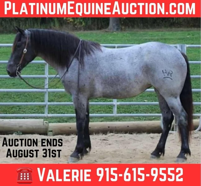 ONLINE AUCTION Place your bids at www.PlatinumEquineAuction.com Starting Bid $3500 Auction ends August 31st, 2025 Need a new saddle? Check out White Rock Saddles on our website or Facebook Sky 2020 blue roan Percheron X quarter horse cross mare. Standing 16 hands and is a 2020 model. She rides, drives both single and in a hitch. She is a people person always goes up to you. She can be touched in the face, mouth, belly and does not get bothered. Easy to catch and no issues with deworming or farrier. Gets along with all the animals in the pasture. She is an all around kid/family friendly, trail riding, ranch riding. She has featured in parades and has no bad habits no bucks and isn’t spooked easily. Located in El Paso, TX. Contact Valerie Mendoza 915-615-9552 with any questions. ONLINE AUCTION Place your bids at www.PlatinumEquineAuction.com Starting Bid $3500 Auction ends August 31st, 2025 Need a new saddle? Check out White Rock Saddles on our website or Facebook