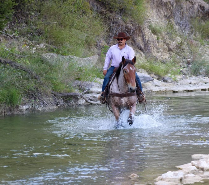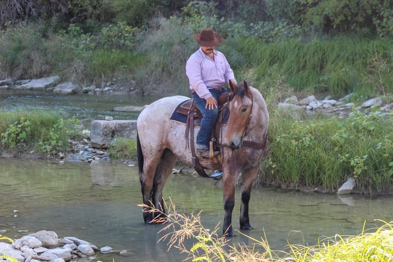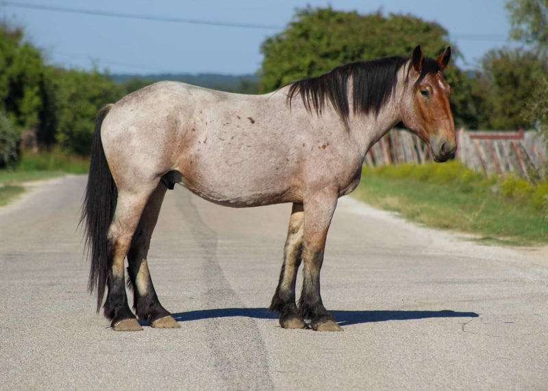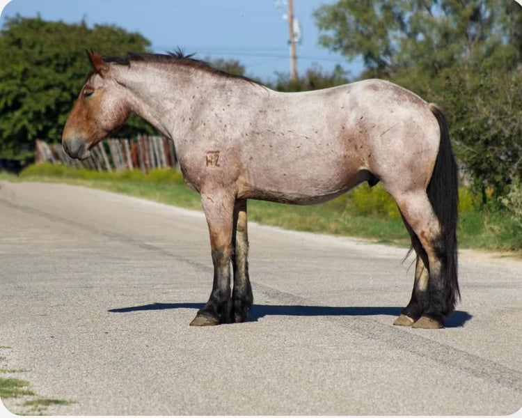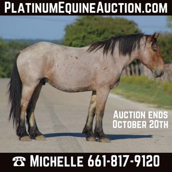 ONLINE AUCTION Place your bids at www.PlatinumEquineAuction.com Starting Bid $3500 Auction ends October 20th, 2024 Need a new saddle? Check out White Rock Saddles on our website or Facebook! Here is a unique opportunity to own a ONE of a kind gelding. Bojangles is the PRIME age of 4 years old with his WHOLE life ahead of him ! Standing 17 hds tall ! He is a gorgeous bay roan draft cross. He is puppy dog gentle from the ground all the way up to his back . He loves attention and will just put his head right in your lap to get as many hugs as you will give him . Don’t let his young age fool you it’s just a number and he acts like an old seasoned veteran . Bojangles was born and raised in Montana he has been rode up in some of the steepest country in the world , he’s sure footed and takes cares of you . He has seen many wildlife up in the mountains and is used to it all . He is excellent down the trail, he will cross logs , water , and bridges with ease. He is TRULY a gentle giant and so easy to be around . We have rode him in town several times including down at the famous Fort Worth Stockyards with crowds of people , loud music , carriage rides and heavy traffic he was unbothered by it all. He will ride out right down the hwy with semi trucks and cars zooming by him. Bojangles is great with his feet for the farrier , stands for bathes , easy to catch in the pasture where he currently has 4 other pasture mates . He stands for mounting from the ground and a mounting block . He stands tied and he be tacked up like a perfect gentleman. He is one you don’t want to miss. Watch his video and you will fall in love. Contact us to come try him, or we can set up a FaceTime also. If you need help with transport don’t hesitate to ask we have a list of reputable haulers that can get him safely to your doorstep world wide. Located in Stephenville, TX. Contact M $ Performance Horses Michelle 661-817-9120. ONLINE AUCTION Place your bids at www.PlatinumEquineAuction.com Starting Bid $3500 Auction ends October 20th, 2024 Need a new saddle? Check out White Rock Saddles on our website or Facebook!
