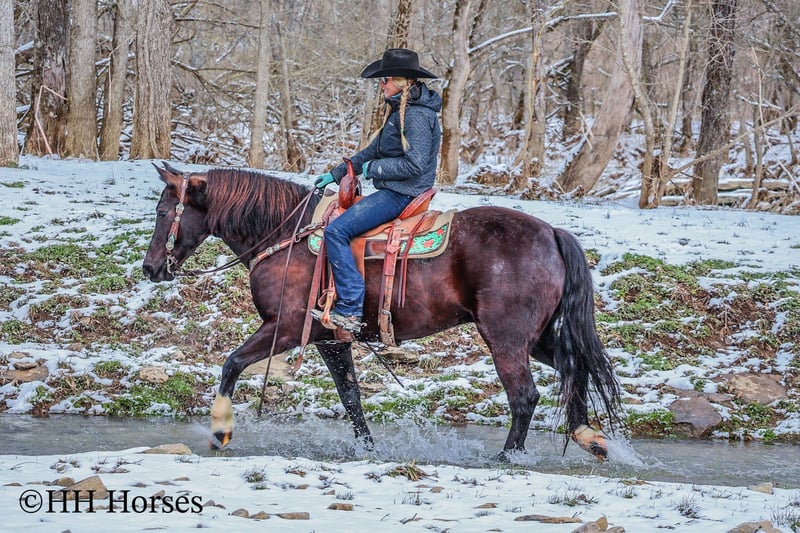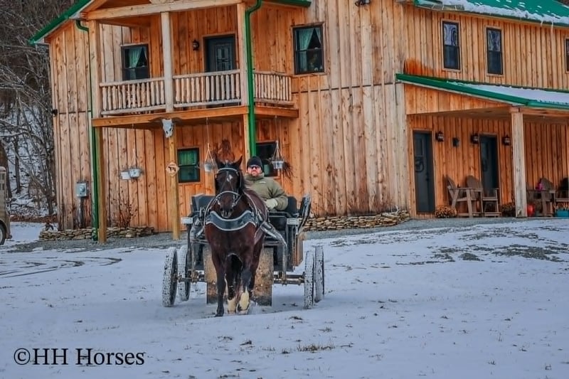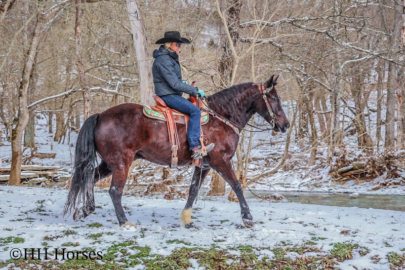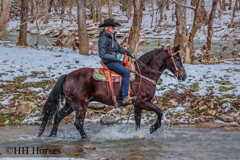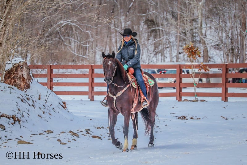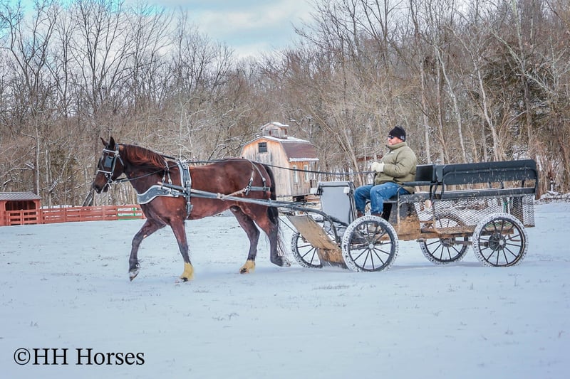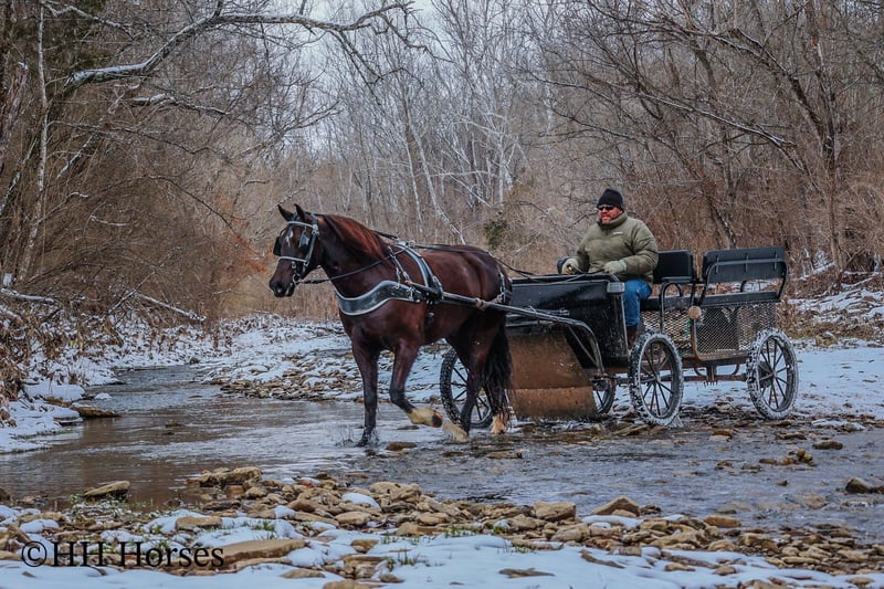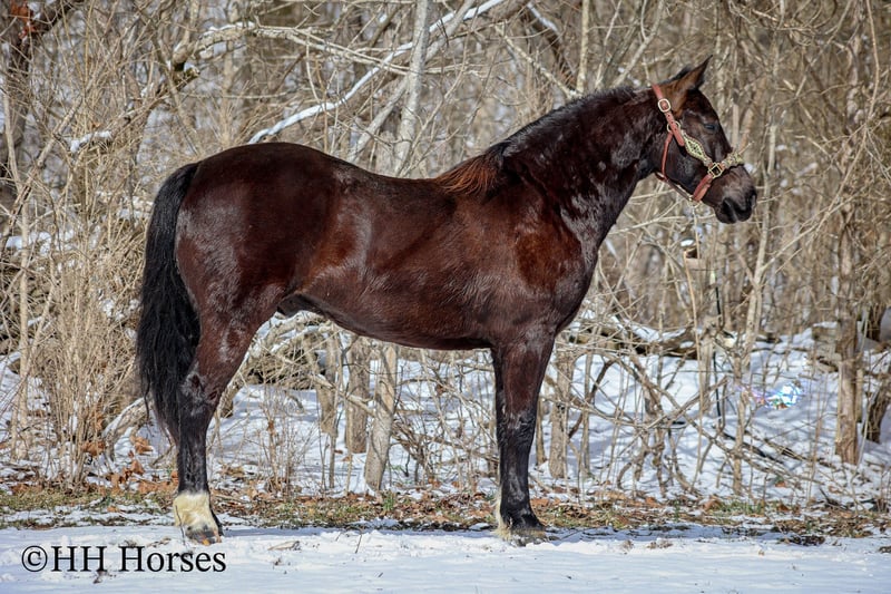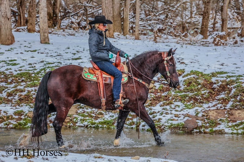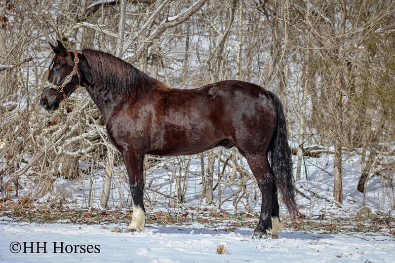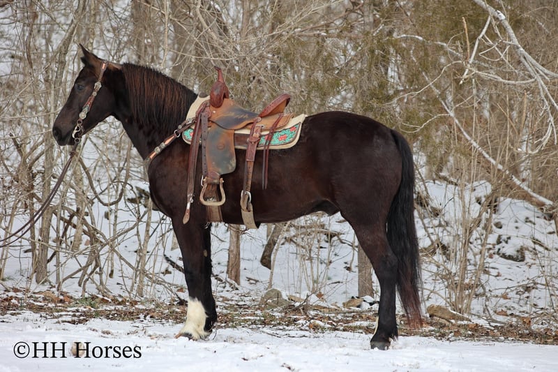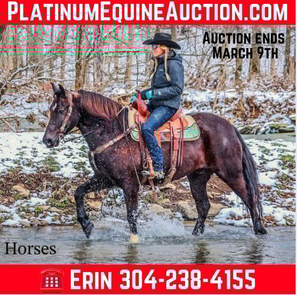 ONLINE AUCTION Place your bids at www.PlatinumEquineAuction.com Starting Bid $3500 Auction ends March 9th, 2025 Need a new saddle? Check out White Rock Saddles on our website or Facebook! This is “UNCLE HERSHEL”, a handy broke, professionally trained, smart, and gentle BLACK PERCHERON CROSSBRED GELDING that is broke to ride and drive. This gelding stands 15.1 hands tall and is 6 years old. He has been used for ranch work, driving, and been hooked to farm machinery. He has good bone and feet with an attractive refined head. He rides around nicely and has a collected canter, a big stop, and he just floats across the ground. He is sure footed, smooth, and a pleasure to ride or drive. He has been through the cross country driving courses, on the main roads, and in the woods. He will cross deep water under harness or tack. He is traffic safe, not spooky, and easy to harness and hitch. He is cool horse that will ride around and get where you want him to be. He has lots of feel in the bridle and seat. He is attractive, very bright, has a head full of sense, and he is personable. This gelding is one you don’t want to miss out on. If you’d like more info or want to make a Buy It Now Offer contact HH Horses Erin 304-238-4155 Located in Flemingsburg, KY. ONLINE AUCTION Place your bids at www.PlatinumEquineAuction.com Starting Bid $3500 Auction ends March 9th, 2025 Need a new saddle? Check out White Rock Saddles on our website or Facebook!