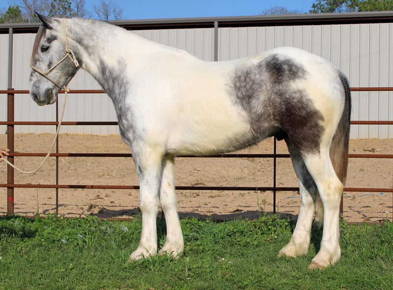 ONLINE AUCTION Place your bids at www.PlatinumEquineAuction.com Starting Bid $3500 Auction ends June 9th, 2024 Need a new saddle? Check out White Rock Saddles on our website or Facebook! Meet Concho, a gentle and affectionate crossbred gelding that will capture hearts wherever he goes! Whether you’re hitting the trails or setting up camp in the hunting grounds, Concho is guaranteed to turn heads. Concho is 8 years old stands at 16.hh and wears a size 4 shoe. He is a absolutely beautiful grey and white paint and has the feathers and bone of a true crossbred! Concho boasts a smooth trot and lope, ensuring a delightful ride all day long. He’s a true gentleman under the saddle, seamlessly opening and closing gates. This solid ranch gelding is versatile, whether you’re dragging calves in the branding pen or embarking on a cattle-doctoring adventure during your next big loop. This surefooted and mild-mannered gelding is not only easy to handle but also makes for the perfect companion on hunting expeditions and pack-in camping trips. He has extensive experience in hunting camps, Concho excels in packing out game and leading a pack-string with ease. Navigating mountains is second nature to Concho, making him an exceptional trail horse. His calm demeanor, sure footing, and easygoing nature make him a joy to ride on any trail. Additionally, Concho shines in the arena, displaying softness, flexibility, and an impressive stop. No matter your equestrian pursuits, Concho is the horse for you. Whether you’re seeking a reliable ranch companion or a stylish performer in the arena, Concho is the epitome of a versatile and well-loved gelding. Don’t miss the chance to bring this exceptional horse into your barn he truly is a favorite that suits riders of all levels! Call or text TR Livestock Rachel 605-370-4644 for more info! Located in Rusk, TX. ONLINE AUCTION Place your bids at www.PlatinumEquineAuction.com Starting Bid $3500 Auction ends June 9th, 2024 Need a new saddle? Check out White Rock Saddles on our website or Facebook!